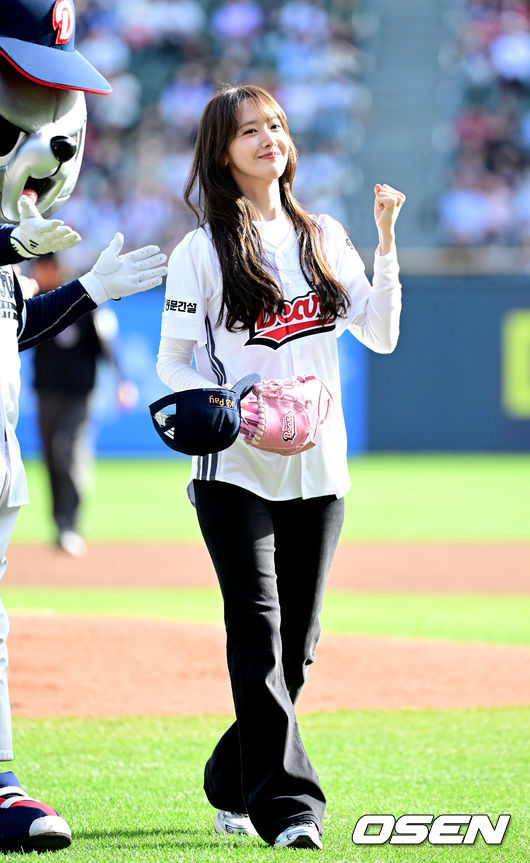 18일 오후 서울 잠실야구장에서 2026 신한 SOL KBO리그 두산 베어스와 KIA 타이거즈의 경기가 열렸다. 홈팀 두산은 최승용, 방문팀 KIA는 애덤 올러를 선발로 내세웠다. 시구자로 나선 가수 겸 배우 임윤아가 인사를 전했다.