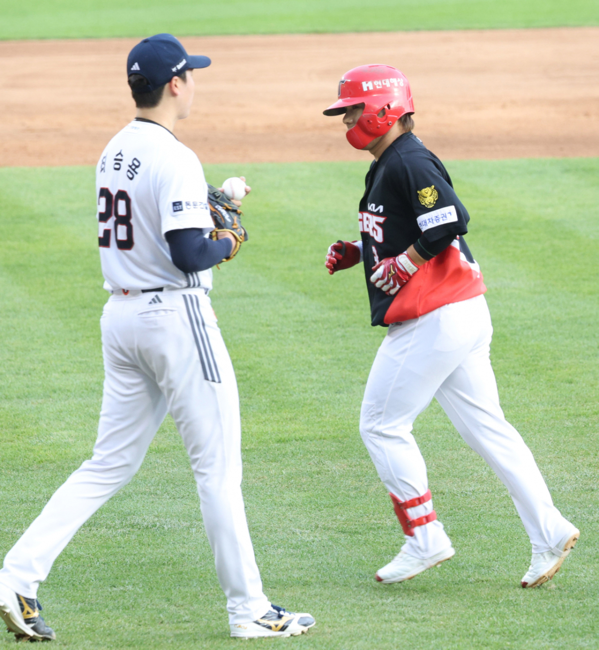 2026 신한 SOL KBO리그 두산 베어스와 KIA 타이거즈의 경기가 18일 서울 잠실야구장에서 열렸다. KIA 김선빈은 5회초 1사 1,2루 상황에서 두산 선발 최승용을 상대로 1타점 적시타를 기록했다. 김선빈은 출루 후 대주자와 교체되었다. 2026 신한 SOL KBO리그 두산 베어스 대 KIA 타이거즈 경기가 18일 서울 잠실야구장에서 열렸다. KIA 김선빈이 5회초 1사 1,2루에서 두산 선발 최승용을 상대로 1타점 적시타를 날리고 출루한 후 대주자와 교체되고 있다. 독자들의 PICK! '성매매 논란' 지나, 결혼·출산?…웨딩드레스 이어 유모차까지 100만원도 못 벌던 개그맨..."수입 1000배" 변호사 된 깜짝 근황 엄마 출근하면 돌변한 아빠...'미성년' 의붓딸 성폭행, 2살 친딸도 폭행 "제수씨와 잠자리를?" 초강수 질문…'친자확인' 남편, 끝내 결백 입증
