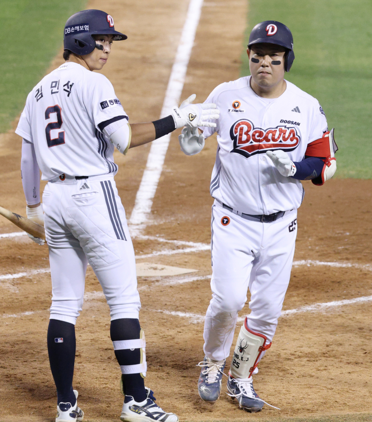 두산 양의지가 8회말 무사에서 좌중월 1점 홈런을 날리고 홈인하고 있다.