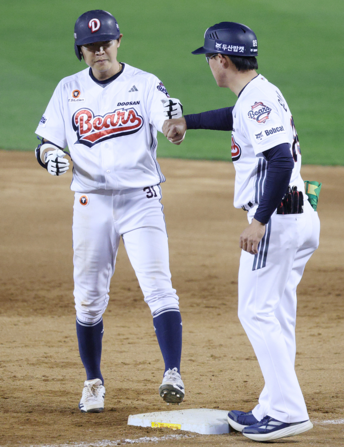 2026 신한 SOL KBO리그 두산 베어스와 KIA 타이거즈의 경기가 18일 서울 잠실야구장에서 열렸다. 두산 정수빈은 8회말 2사 1,3루 상황에서 동점 1타점 적시타를 날렸다. 정수빈은 출루 후 세리머니를 했다. 2026 신한 SOL KBO리그 두산 베어스 대 KIA 타이거즈 경기가 18일 서울 잠실야구장에서 열렸다. 두산 정수빈이 8회말 2사 1,3루에서 동점 1타점 적시타를 날리고 출루한 후 세리머니를 하고 있다. 독자들의 PICK! '성매매 논란' 지나, 결혼·출산?…웨딩드레스 이어 유모차까지 100만원도 못 벌던 개그맨..."수입 1000배" 변호사 된 깜짝 근황 엄마 출근하면 돌변한 아빠...'미성년' 의붓딸 성폭행, 2살 친딸도 폭행 "제수씨와 잠자리를?" 초강수 질문…'친자확인' 남편, 끝내 결백 입증