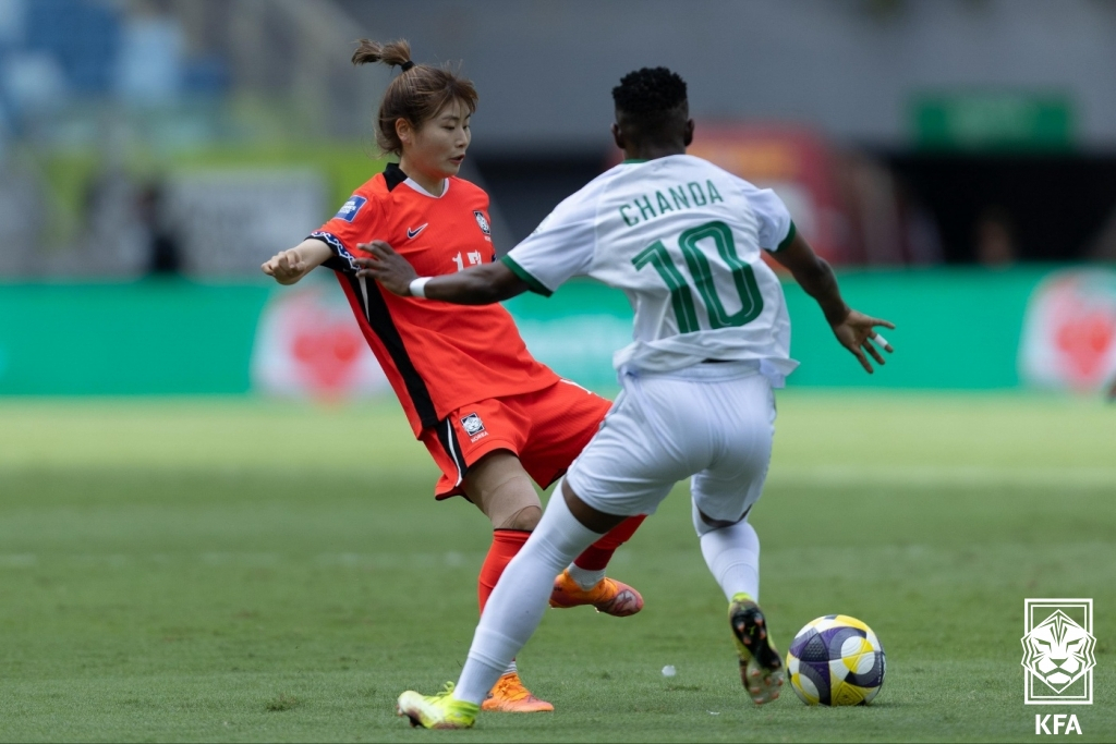 하지만 팽팽하던 흐름은 전반 26분에 깨졌다. 페널티박스 안에서 최민아가 프리스타 칠루피아를 막다 반칙을 범해 페널티킥을 내줬다. 잠비아는 키커로 나선 바브라 반다가 침착하게 선제골을 넣었다.