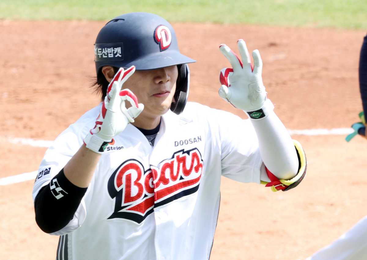 2026 신한 SOL KBO리그 두산 베어스와 KIA 타이거즈의 경기가 19일 서울 잠실야구장에서 열렸다. 두산 박준순은 3회말 1사에서 KIA 선발 양현종을 상대로 좌월 1점 홈런을 날렸다. 박준순은 홈인하고 있었다.