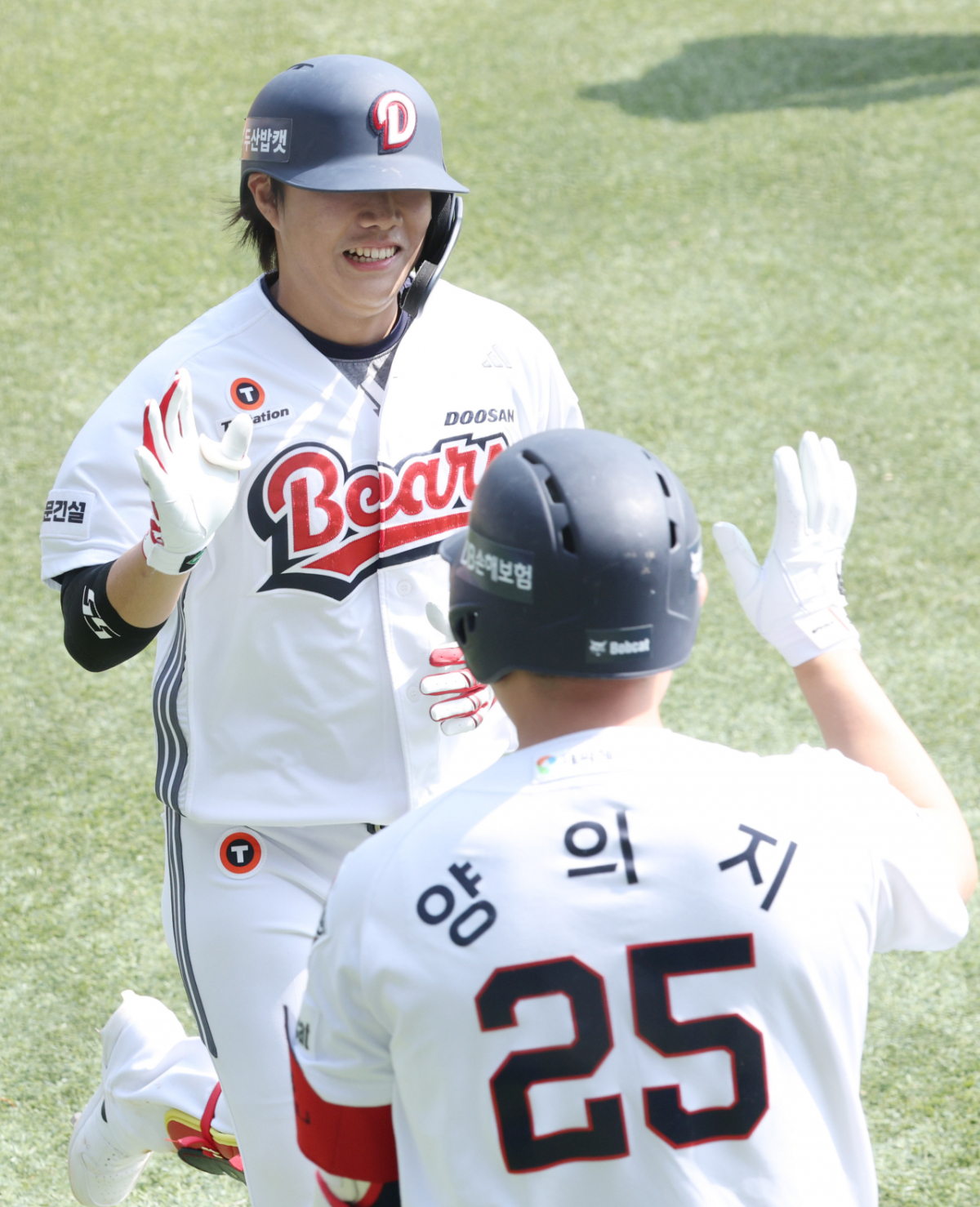2026 신한 SOL KBO리그 두산 베어스와 KIA 타이거즈의 경기가 19일 서울 잠실야구장에서 열렸다. 두산 박준순은 3회말 1사에서 KIA 선발 양현종을 상대로 좌월 1점 홈런을 날렸다. 박준순은 홈인하며 기뻐했다.