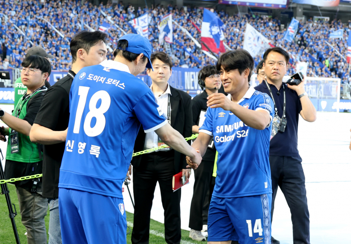 수원삼성 레전드 코치로 나선 신영록이 19일 수원 월드컵경기장에서 열린 OGFC와 수원삼성의 레전드 매치에 참여했다. 그는 반데사르와 서정원 감독의 따뜻한 손길과 함께 경기에 임했다. 이 경기는 2026년 4월 19일에 진행되었다. 수원삼성 레전드 코치로 나선 신영록이 19일 수원 월드컵경기장에서 열리는OGFC와 수원삼성의 레전드 매치에서 반데사르와 서정원 감독의 따뜻한 손길과 함께 하고 있다. 2026.04.19. 독자들의 PICK! '성매매 논란' 지나, 결혼·출산?…웨딩드레스 이어 유모차까지 100만원도 못 벌던 개그맨..."수입 1000배" 변호사 된 깜짝 근황 엄마 출근하면 돌변한 아빠...'미성년' 의붓딸 성폭행, 2살 친딸도 폭행 "제수씨와 잠자리를?" 초강수 질문…'친자확인' 남편, 끝내 결백 입증