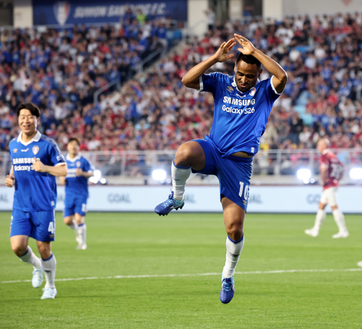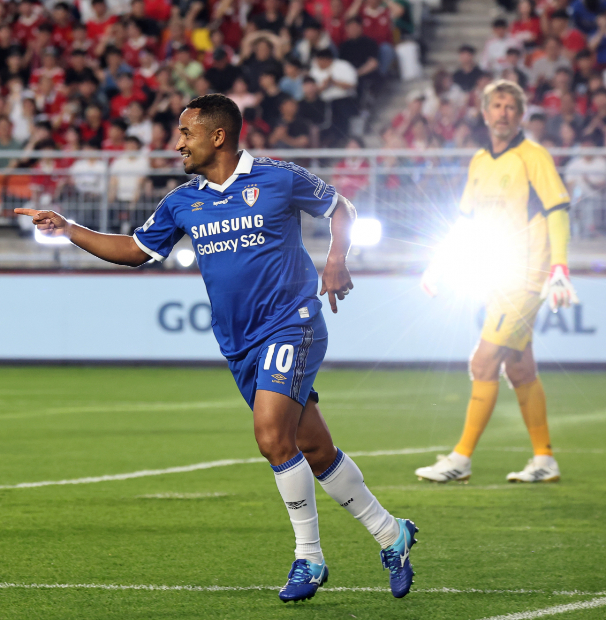수원삼성 레전드 산토스가 19일 수원 월드컵경기장에서 열리는OGFC와 수원삼성의 레전드 매치에서 선제골을 성공시킨후동료들과 기쁨을 만끽하고 있다. 2026.04.19. 독자들의 PICK! '성매매 논란' 지나, 결혼·출산?…웨딩드레스 이어 유모차까지 100만원도 못 벌던 개그맨..."수입 1000배" 변호사 된 깜짝 근황 엄마 출근하면 돌변한 아빠...'미성년' 의붓딸 성폭행, 2살 친딸도 폭행 "제수씨와 잠자리를?" 초강수 질문…'친자확인' 남편, 끝내 결백 입증