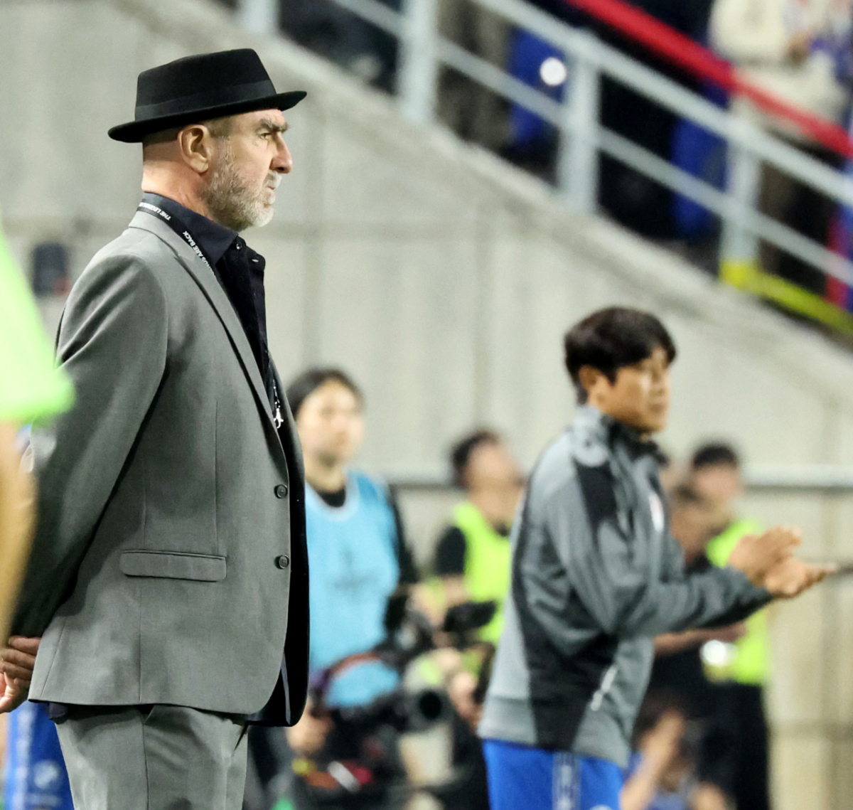 OGFC 에릭 칸토나 감독이 19일 수원 월드컵경기장에서 열리는OGFC와 수원삼성의 레전드 매치에서 그라운드를 응시하고 있다. 2026.04.19.