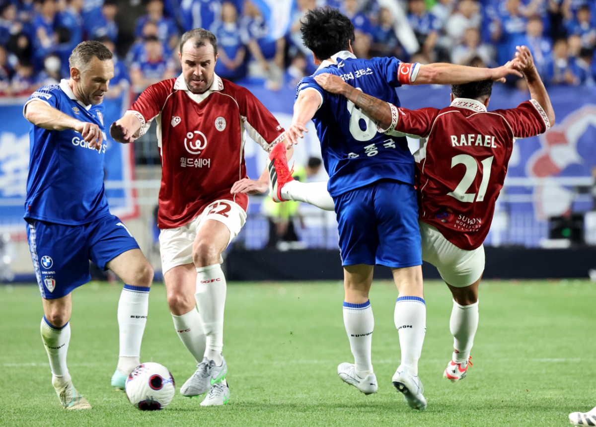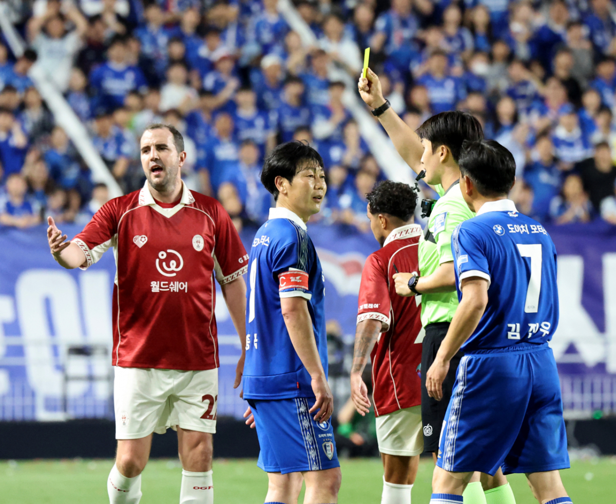 송종국이 19일 수원 월드컵경기장에서 열린 OGFC와 수원삼성의 레전드 매치에 참가했다. 그는 후반 라파엘과 몸싸움을 벌였다. 이로 인해 송종국은 옐로우카드를 받았다. 송종국이 19일 수원 월드컵경기장에서 열리는OGFC와 수원삼성의 레전드 매치 후반 라파엘과 몸싸움을 벌이다 옐로우카드를 받고 있다. 2026.04.19. 독자들의 PICK! '성매매 논란' 지나, 결혼·출산?…웨딩드레스 이어 유모차까지 100만원도 못 벌던 개그맨..."수입 1000배" 변호사 된 깜짝 근황 엄마 출근하면 돌변한 아빠...'미성년' 의붓딸 성폭행, 2살 친딸도 폭행 "제수씨와 잠자리를?" 초강수 질문…'친자확인' 남편, 끝내 결백 입증