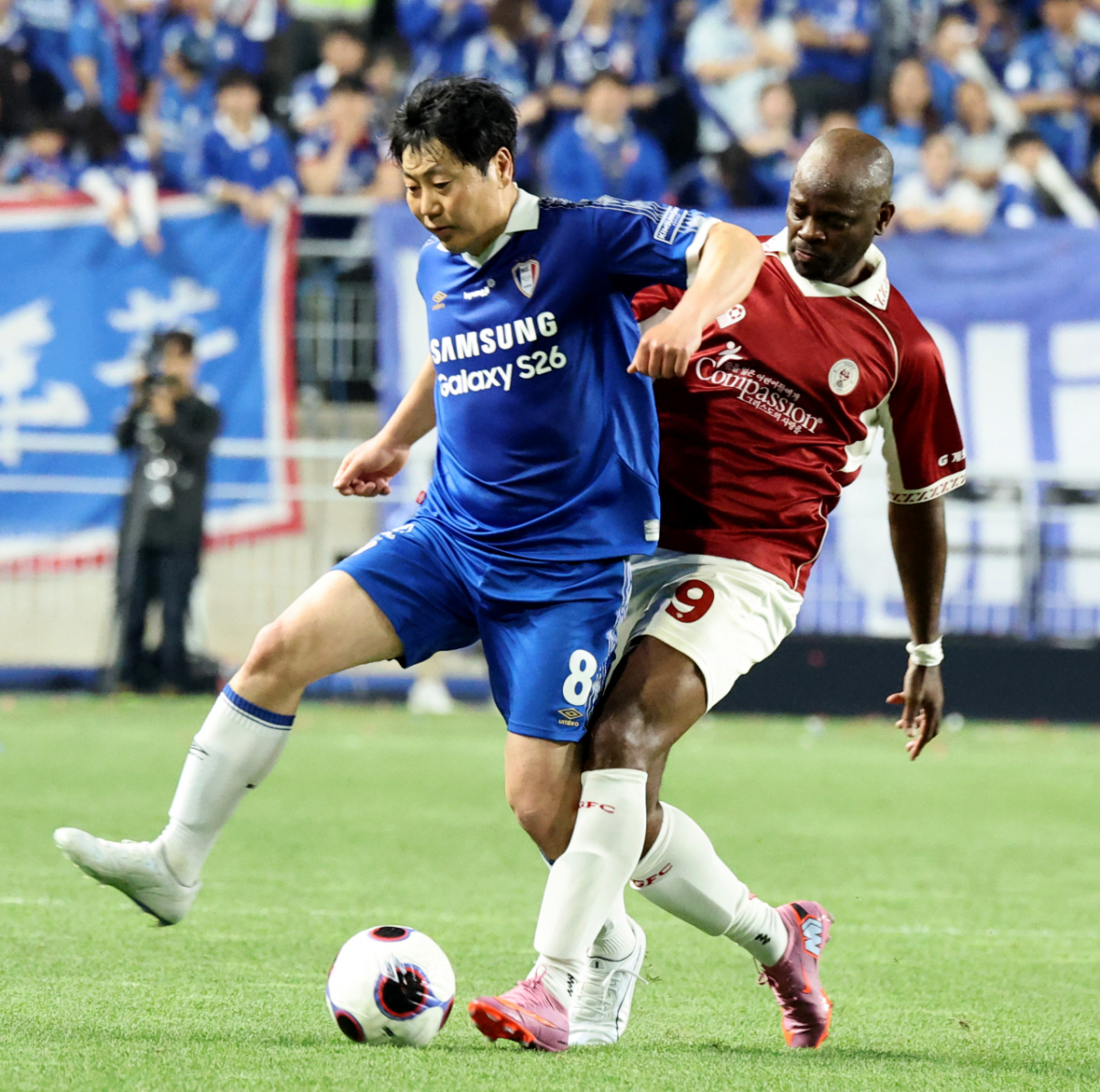 송종국이 19일 수원 월드컵경기장에서 열린 OGFC와 수원삼성의 레전드 매치에 참가했다. 그는 이 경기에서 베르바토브와 치열한 몸싸움을 벌였다. 이 경기는 2026년 4월 19일에 진행되었다. 송종국이 19일 수원 월드컵경기장에서 열리는OGFC와 수원삼성의 레전드 매치에서 베르바토브와 치열한 몸싸움을 벌이고 있다.. 2026.04.19. 독자들의 PICK! '성매매 논란' 지나, 결혼·출산?…웨딩드레스 이어 유모차까지 100만원도 못 벌던 개그맨..."수입 1000배" 변호사 된 깜짝 근황 엄마 출근하면 돌변한 아빠...'미성년' 의붓딸 성폭행, 2살 친딸도 폭행 "제수씨와 잠자리를?" 초강수 질문…'친자확인' 남편, 끝내 결백 입증