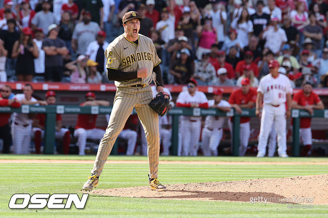 샌디에이고는 20일(이하 한국시간) 미국 캘리포니아주 애너하임 에인절 스타디움에서 열린 LA 에인절스와의 경기에서 2-1로 승리했다. 마무리투수 밀러는 1이닝 2탈삼진 무실점을 기록하며 시즌 8세이브를 따냈다.