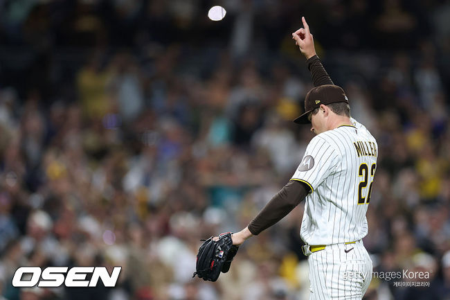 [OSEN=길준영 기자] 샌디에이고 파드리스 마무리투수 메이슨 밀러(28)가 32⅔이닝 연속 무실점 행진을 이어갔다.