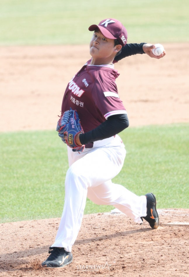 박준현은 지난 19일 고양 국가대표야구장에서 열린 '2026 KBO 퓨처스리그' 롯데 자이언츠전에 등판해 5이닝 4피안타 8탈삼진 2볼넷 3실점을 기록했지만 아쉽게 팀이 4-7로 패해 패전 투수가 됐다.