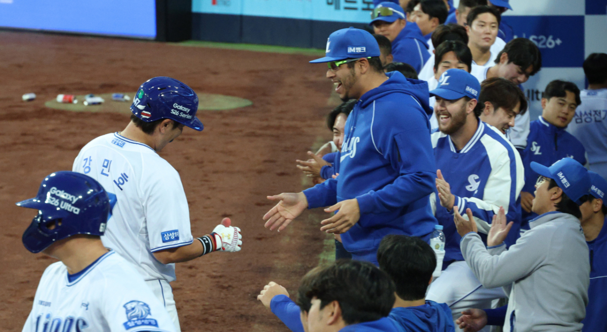 21일 대구 삼성라이온즈파크에서 2026 신한 SOL KBO리그 삼성 라이온즈 대 SSG 랜더스 경기가 열렸다. 삼성 강민호는 2회말 2사 2루에서 선제 1타점 적시 2루타를 날렸다. 강민호는 3루까지 내달렸으나 SSG 3루수 최정에 태그아웃됐고 동료들의 환영을 받았다.