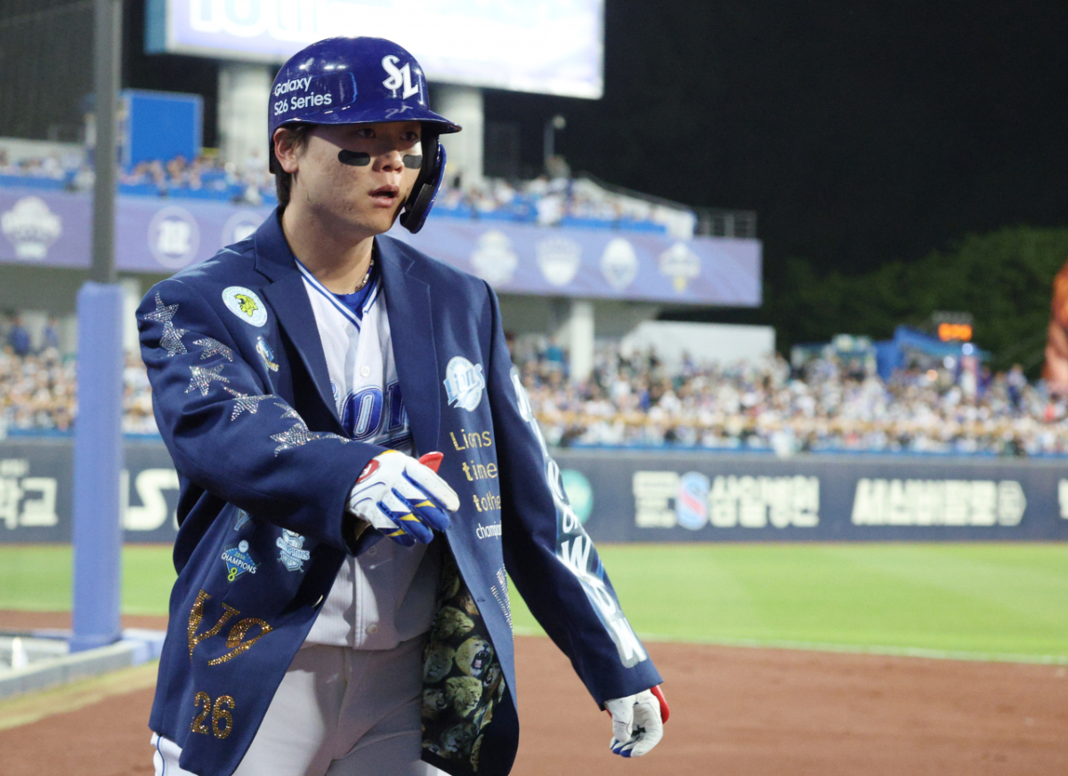 2026 신한 SOL KBO리그 삼성 라이온즈 대 SSG 랜더스 경기가 21일 대구 삼성라이온즈파크에서 열렸다. 삼성 박승규는 3회말 무사에서 역전 좌월 1점 홈런을 날렸다. 그는 홈인한 후 팬들에게 인형을 투척했다.