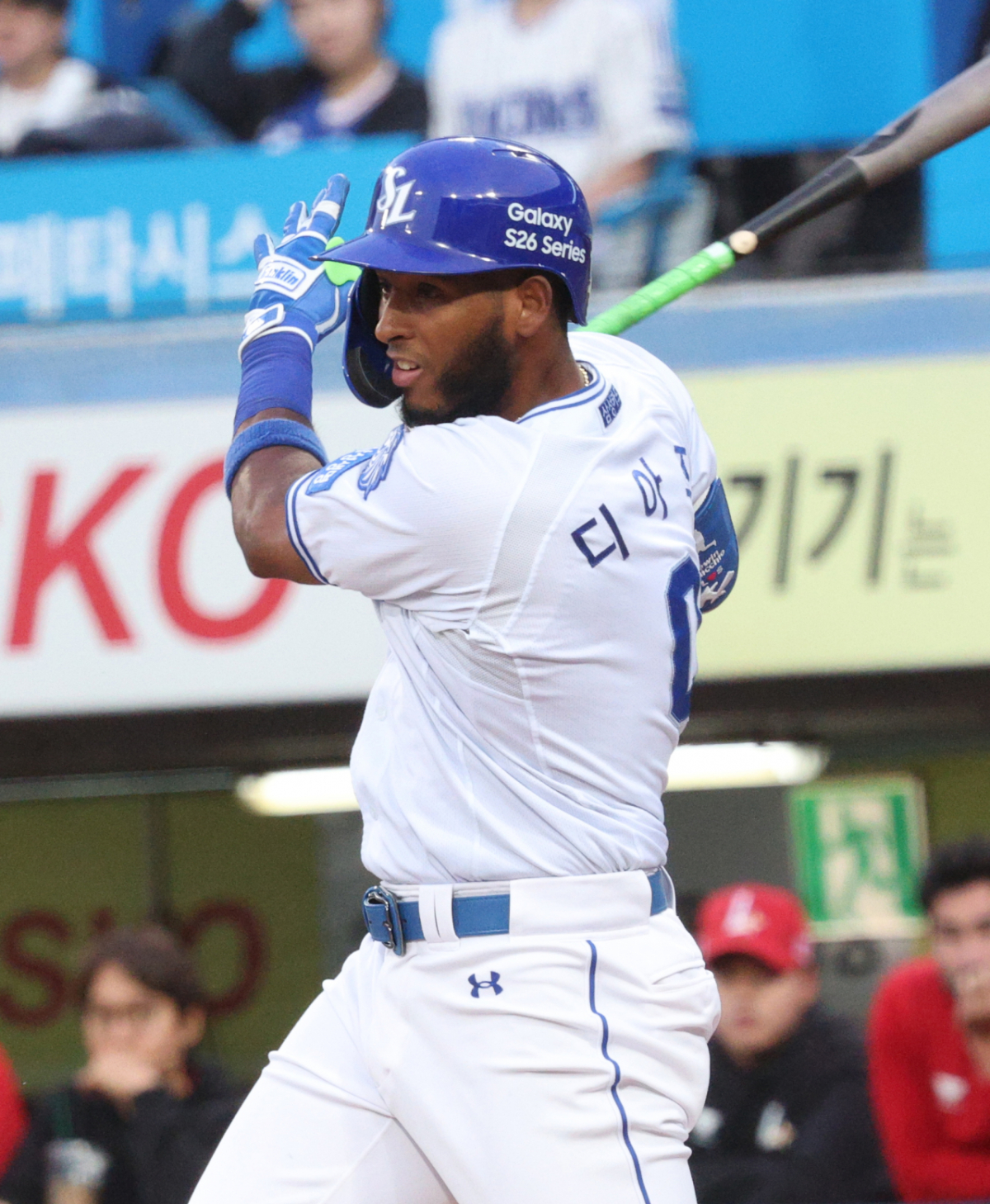 2026 신한 SOL KBO리그 삼성 라이온즈 대 SSG 랜더스 경기가 21일 대구 삼성라이온즈파크에서 열렸다. 삼성 디아즈는 1회말 2사 1루 상황에서 좌전 안타를 날렸다. 이는 디아즈의 첫 안타였다.