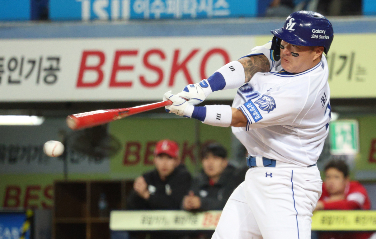 21일 대구 삼성라이온즈파크에서 2026 신한 SOL KBO리그 삼성 라이온즈 대 SSG 랜더스 경기가 열렸다. 삼성 최형우는 5회말 무사 1루 상황에서 좌전 안타를 쳤다. 이 장면은 역전 찬스로 이어질 수 있는 상황이었다.