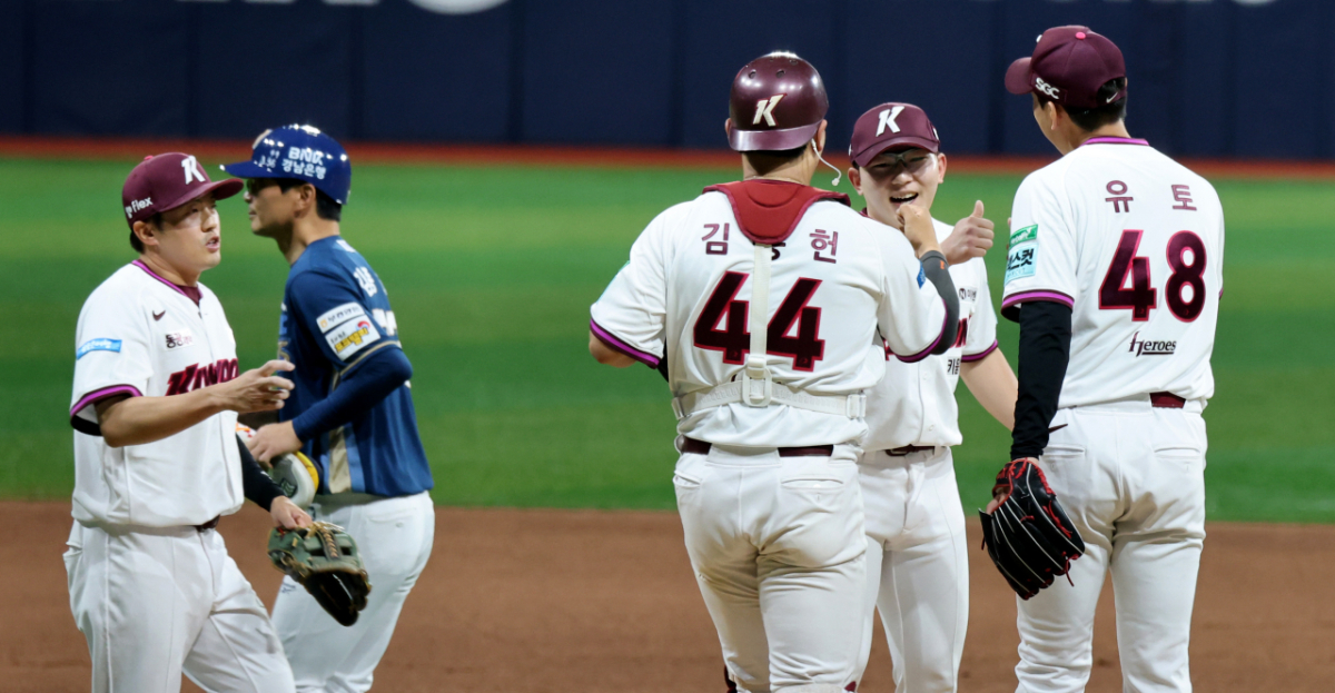 키움 마무리 유토가 21일 고척스카이돔에서 열리는 2026KBO리그 키움히어로즈와 NC다이노스 경기 9회초 등판해 2사 1,2루 위기를 막아낸 후 김동현과 포옹하며 안도하고 있다. 2026.04.21.