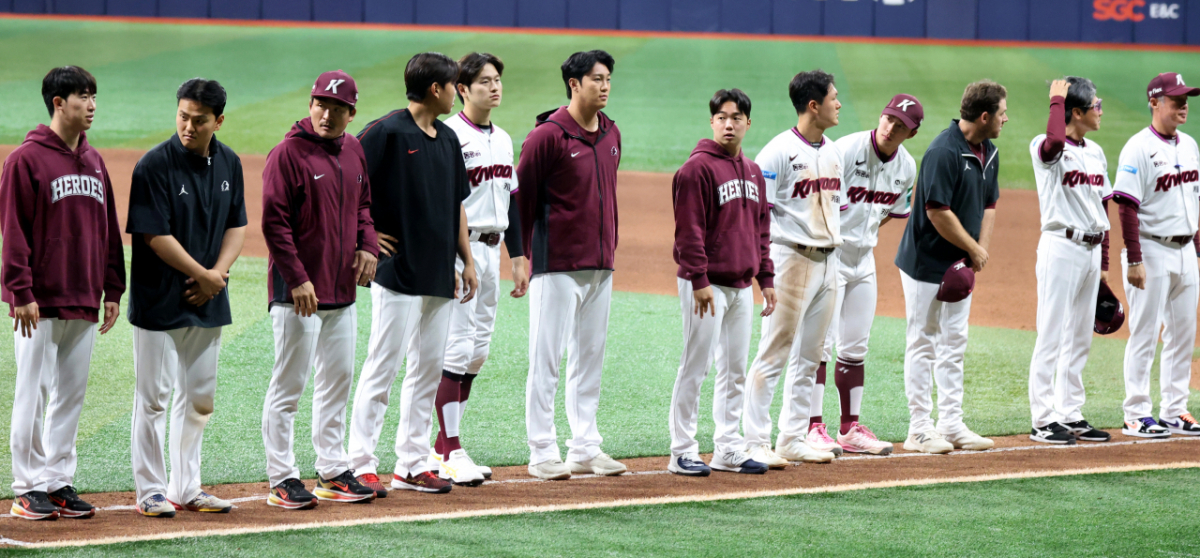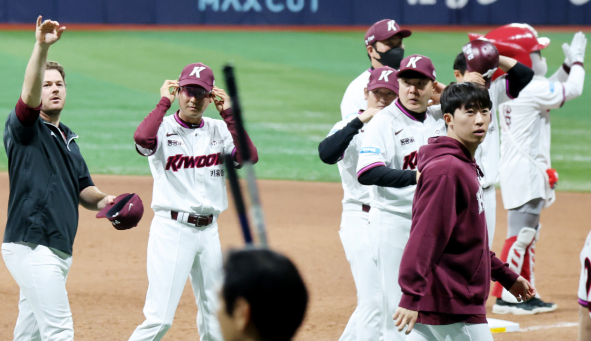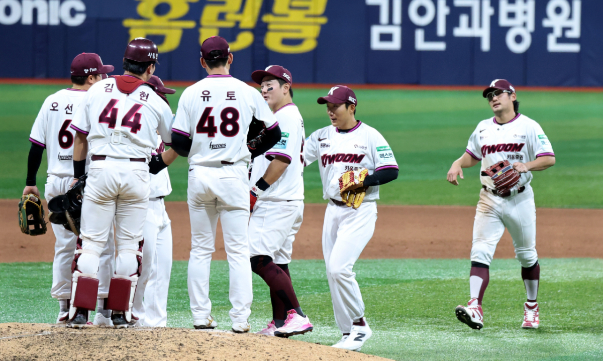 키움의 위기는 거기까지였다. 1점을 지켜낸 유토가 안도하며 포수 김동현과 포옹하는 모습이 애틋하다.