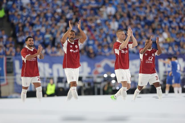 전후반 사이 하프타임에는 난치병 어린이의 소원을 이뤄주는 ‘메이크어위시’ 재단과 함께 또다른 감동을 이어갔다. 소아암을 이겨낸 축구 꿈나무 김찬유(10) 군이 그라운드에 등장하며 OGFC 명예 입단식이 진행됐다. 차범근 전 수원삼성 감독이 직접 OGFC의 유니폼을 전달했고, 김 군은 프리미어리그 전설들과 같은 유니폼을 입고 그라운드에 서는 꿈 같은 시간을 보냈다.