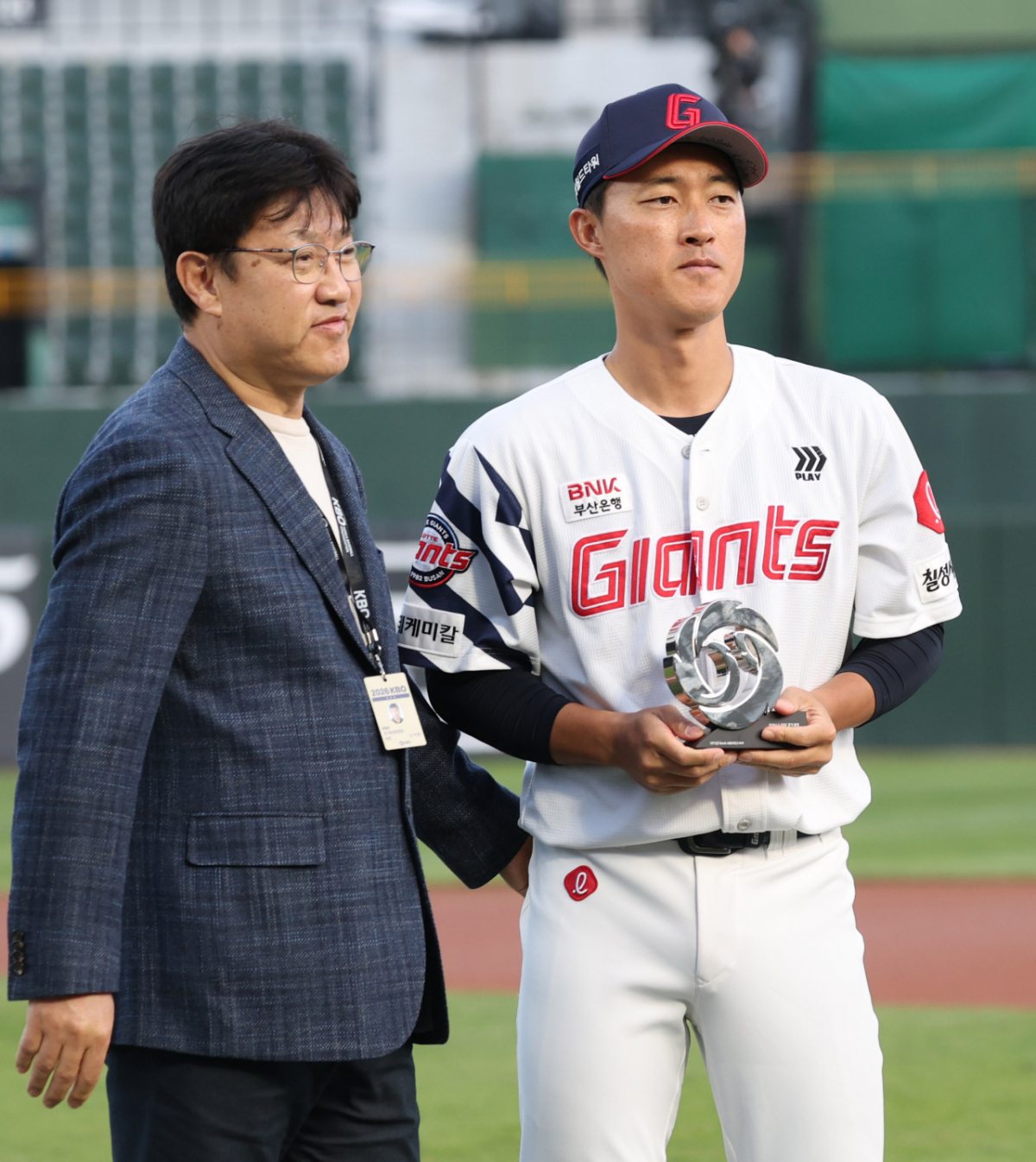 2026 신한 SOL KBO리그 롯데 자이언츠 대 두산 베어스 경기가 23일 부산 사직야구장에서 열렸다. 롯데 노진혁이 1000 경기 출장 달성 수상을 하고 있다. 독자들의 PICK! 허니문 베이비 '출생의 비밀'...결혼 직전 전남친 만난 아내 소유, 임영웅과 '제주도 열애설' 전말 공개 '음주 뺑소니' 김호중, 옥중 50억 돈방석?…지분가치 '반전' 남편 방에 정력제..."아들아, 인생 즐겨" 불륜 응원한 시모