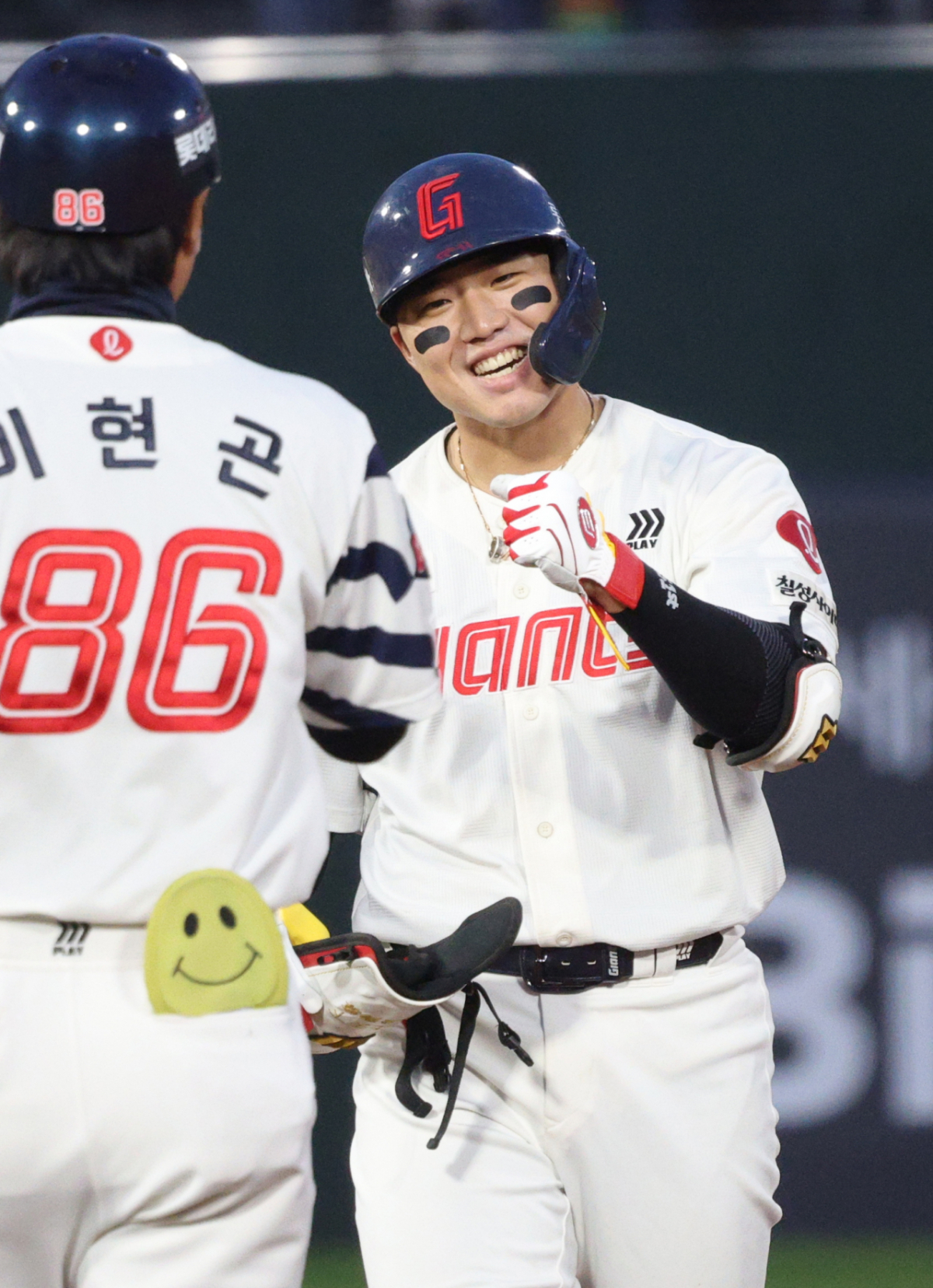 23일 부산 사직야구장에서 2026 신한 SOL KBO리그 롯데 자이언츠 대 두산 베어스 경기가 열렸다. 롯데 손성빈은 2회말 2사 1루 상황에서 동점 1타점 적시 2루타를 기록했다. 손성빈은 출루 후 이현곤 코치의 환영을 받았다.