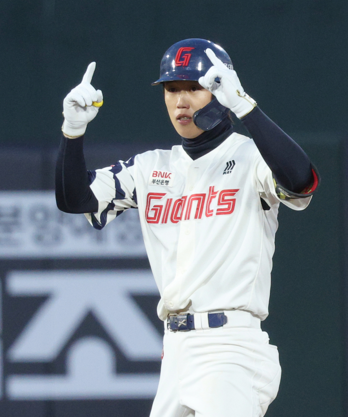 23일 부산 사직야구장에서 2026 신한 SOL KBO리그 롯데 자이언츠 대 두산 베어스 경기가 열렸다. 롯데 전민재는 2회말 2사 2루 상황에서 역전 1타점 적시 2루타를 날렸다. 전민재는 출루 후 세리머니를 했다.