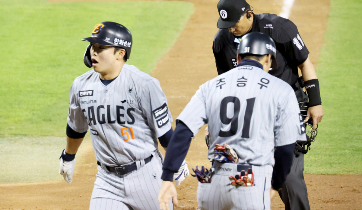 한화의 3번 타자 문현빈이 23일 잠실야구장에서 열린 2026 KBO리그 LG트윈스와의 경기 5회초에 우월 솔로홈런을 터트렸다. 문현빈은 홈런 후 홈인했다. 이 홈런으로 한화는 4-2로 리드했다. 한화 3번타자 문현빈이 23일 잠실야구장에서 열힌 2026 KBO리그 LG트윈스와 한화이글스 경기 5회초 우월 솔로홈런을 터트린 후 홈인하고 있다. 4-2로 리드하는 한화. 2026.04.23. 독자들의 PICK! 허니문 베이비 '출생의 비밀'...결혼 직전 전남친 만난 아내 소유, 임영웅과 '제주도 열애설' 전말 공개 '음주 뺑소니' 김호중, 옥중 50억 돈방석?…지분가치 '반전' 남편 방에 정력제..."아들아, 인생 즐겨" 불륜 응원한 시모