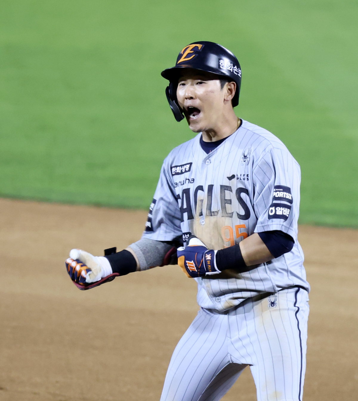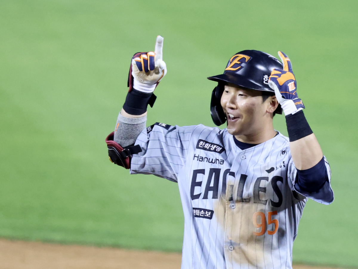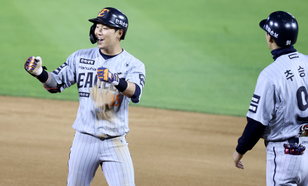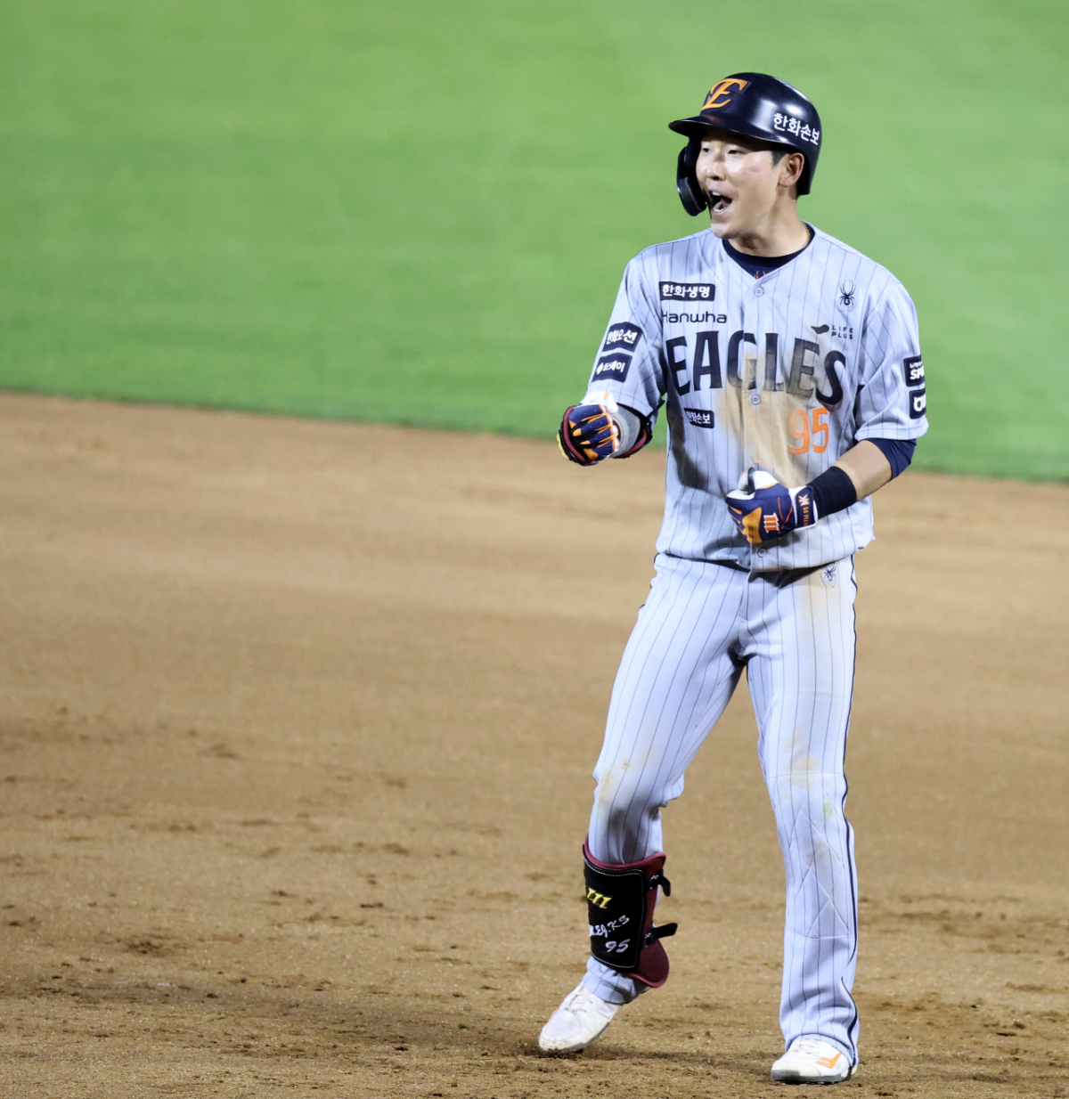 황영묵이 23일 잠실야구장에서 열린 2026 KBO리그 LG트윈스와 한화이글스 경기 6회초 2사 2,3루에서 2타점 좌전안타를 터트렸다. 황영묵은 안타를 터트린 후 자축했다. 이 안타로 한화는 6-2로 역전했다. 한화 1번타자 황영묵이 23일 잠실야구장에서 열힌 2026 KBO리그 LG트윈스와 한화이글스 경기 6회초 2사 2,3루에서 2타점 좌전안타를 터트린 후 자축하고 있다. 한화가 6-2로 역전했다. 2026.04.23. 2루주자의 홈에서 득점상황을 기다리는 황영묵 그렇지! 독자들의 PICK! 허니문 베이비 '출생의 비밀'...결혼 직전 전남친 만난 아내 소유, 임영웅과 '제주도 열애설' 전말 공개 '음주 뺑소니' 김호중, 옥중 50억 돈방석?…지분가치 '반전' 남편 방에 정력제..."아들아, 인생 즐겨" 불륜 응원한 시모