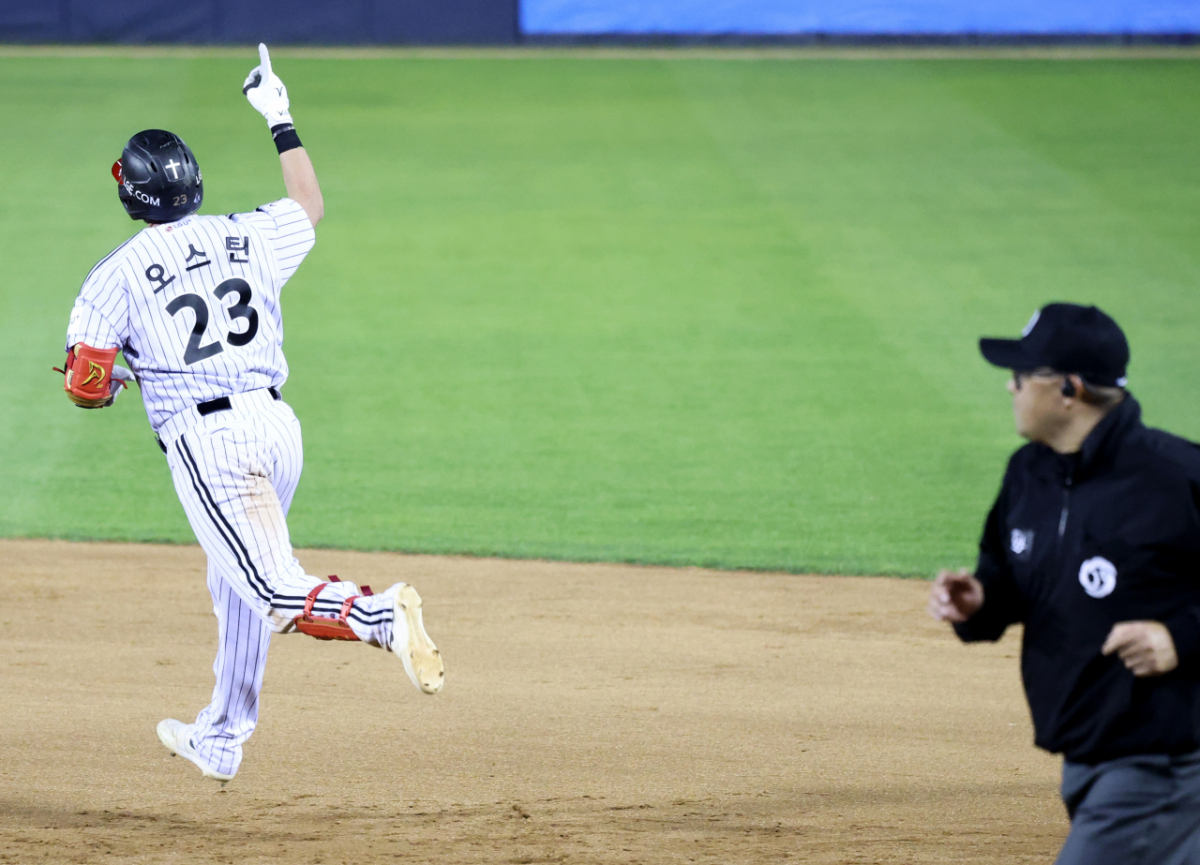 잠실오서방 오스틴이 23일 잠실야구장에서 열린 2026 KBO리그 LG트윈스와 한화이글스 경기에서 솔로홈런을 터트렸다. 그는 9회말 잭쿠싱을 상대로 홈런을 기록했다. 오스틴은 홈런 후 홈인했다. 잠실오서방 오스틴이 23일 잠실야구장에서 열힌 2026 KBO리그 LG트윈스와 한화이글스 경기 9회말 잭쿠싱을 상대로 솔로홈런을 터트린 후 홈인하고 있다. 2026.04.23. 독자들의 PICK! 허니문 베이비 '출생의 비밀'...결혼 직전 전남친 만난 아내 소유, 임영웅과 '제주도 열애설' 전말 공개 '음주 뺑소니' 김호중, 옥중 50억 돈방석?…지분가치 '반전' 남편 방에 정력제..."아들아, 인생 즐겨" 불륜 응원한 시모