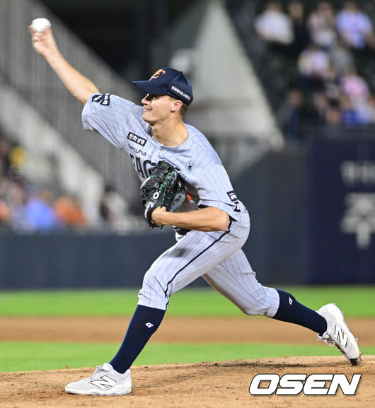8회말 마운드에 오른 한화 투수 쿠싱이 힘차게 공을 뿌리고 있다. 2026.04.23 / [email protected]