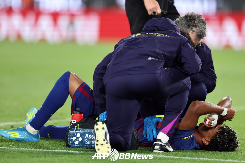 바르셀로나 구단은 23일(한국시간) 공식 홈페이지를 통해 "야말이 왼쪽 햄스트링 부상을 입은 것으로 확인됐다"면서 "남은 시즌 경기에는 출전하지 못하겠지만, 월드컵에는 출전할 수 있을 것으로 예상된다"고 밝혔다.