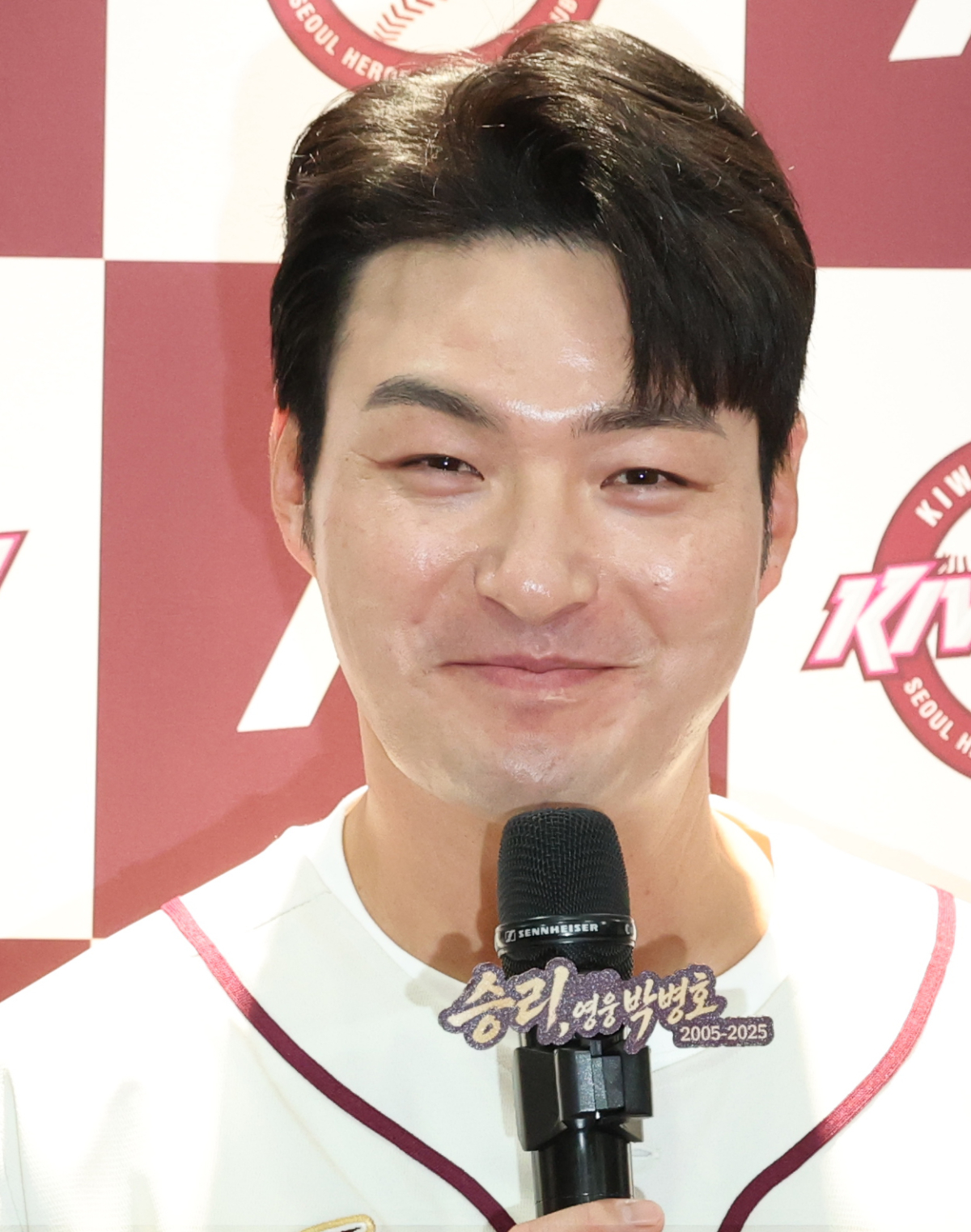 박병호의 은퇴 기자회견이 26일 서울 고척스카이돔 다이아몬드 클럽 라운지에서 열렸다. 박병호는 KBO리그 키움 히어로즈 대 삼성 라이온즈 경기 전에 열린 기자회견에서 질문에 답했다. 그는 웃으며 떠나겠다는 말을 전했다.