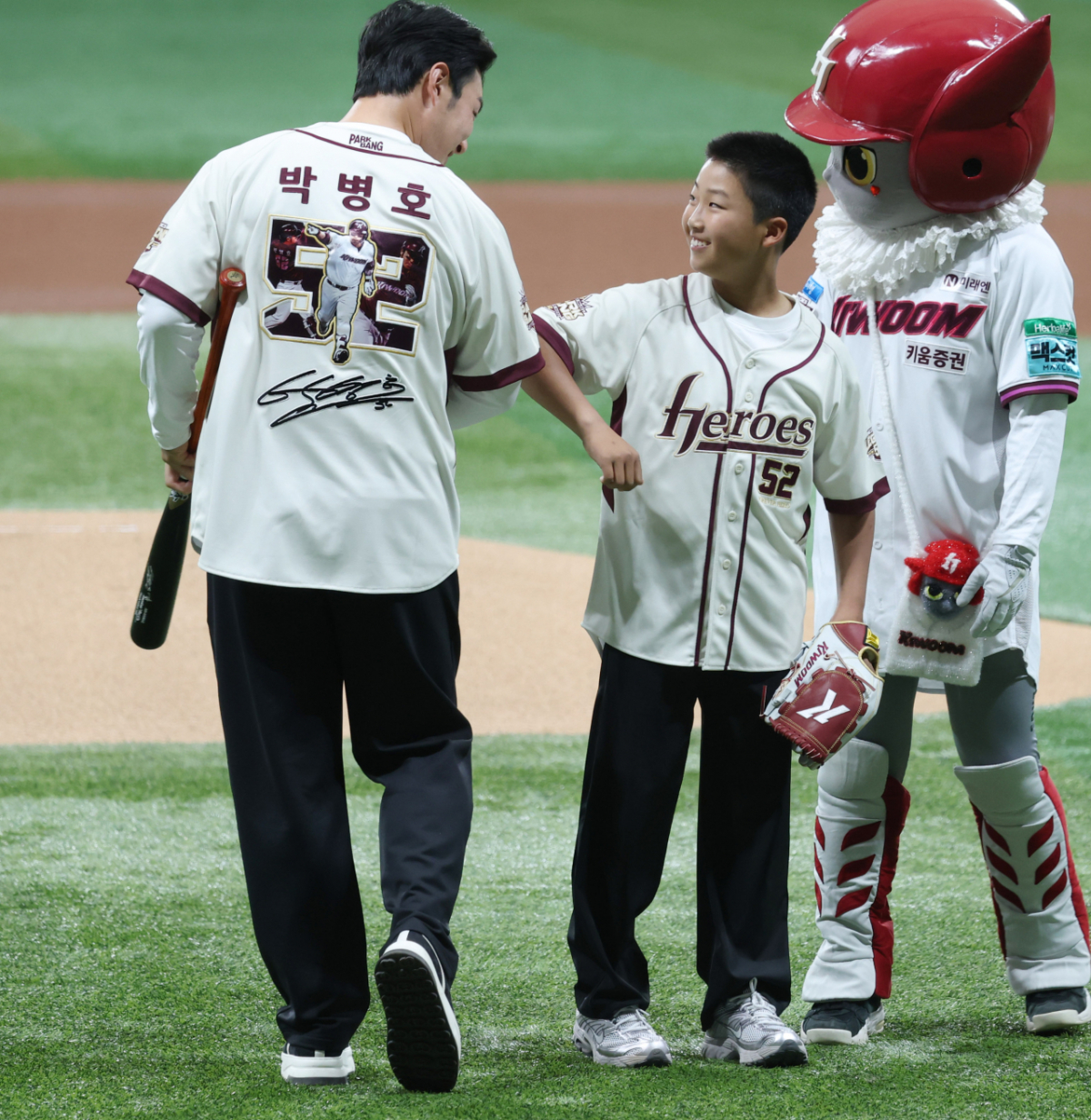 박병호의 은퇴식이 26일 서울 고척스카이돔에서 키움 히어로즈 대 삼성 라이온즈 경기에 앞서 열렸다. 박병호는 이날 시타에 나섰다. 시구를 한 아들과 세리머니를 선보였다. 박병호 은퇴식이 26일 서울 고척스카이돔에서 키움 히어로즈 대 삼성 라이온즈 경기에 앞서 열렸다. 박병호가 이날 시타에 나서 시구를 한 아들고 세리머니를 선보이고 있다. 독자들의 PICK! 박서진, 母 수술 숨긴 부모에 절연 선언 "인연 끊자…난 가족 없다" "신동엽이 축의금 1억, 순박했다"…김원훈 너스레에 '눈살' "디즈니 주스 먹자며 7세부터 강간"…'마이클' 개봉일에 4남매 소송 "연봉 1억이라며" 공무원 아내 이혼 고민에...'투잡' 뛰는 남편