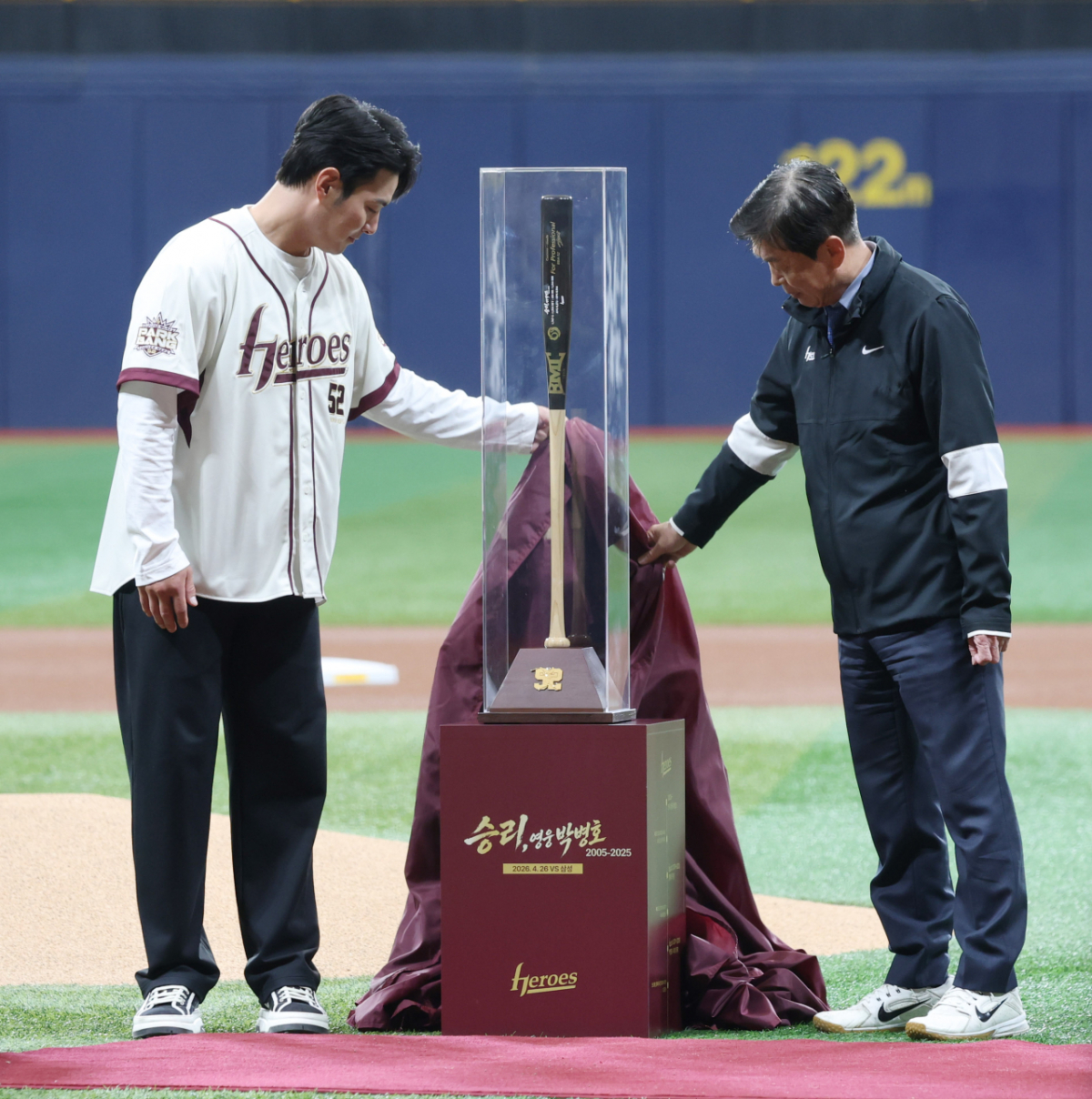 박병호의 은퇴식이 26일 서울 고척스카이돔에서 열렸다. 이날 은퇴식은 키움 히어로즈 대 삼성 라이온즈 경기에 앞서 진행됐다. 박병호는 위재민 대표이사로부터 기념 배트를 받았다. 박병호 은퇴식이 26일 서울 고척스카이돔에서 키움 히어로즈 대 삼성 라이온즈 경기에 앞서 열렸다. 박병호가 위재민 대표이사로부터 기념 배트를 받고 있다. 독자들의 PICK! 박서진, 母 수술 숨긴 부모에 절연 선언 "인연 끊자…난 가족 없다" "신동엽이 축의금 1억, 순박했다"…김원훈 너스레에 '눈살' "디즈니 주스 먹자며 7세부터 강간"…'마이클' 개봉일에 4남매 소송 "연봉 1억이라며" 공무원 아내 이혼 고민에...'투잡' 뛰는 남편