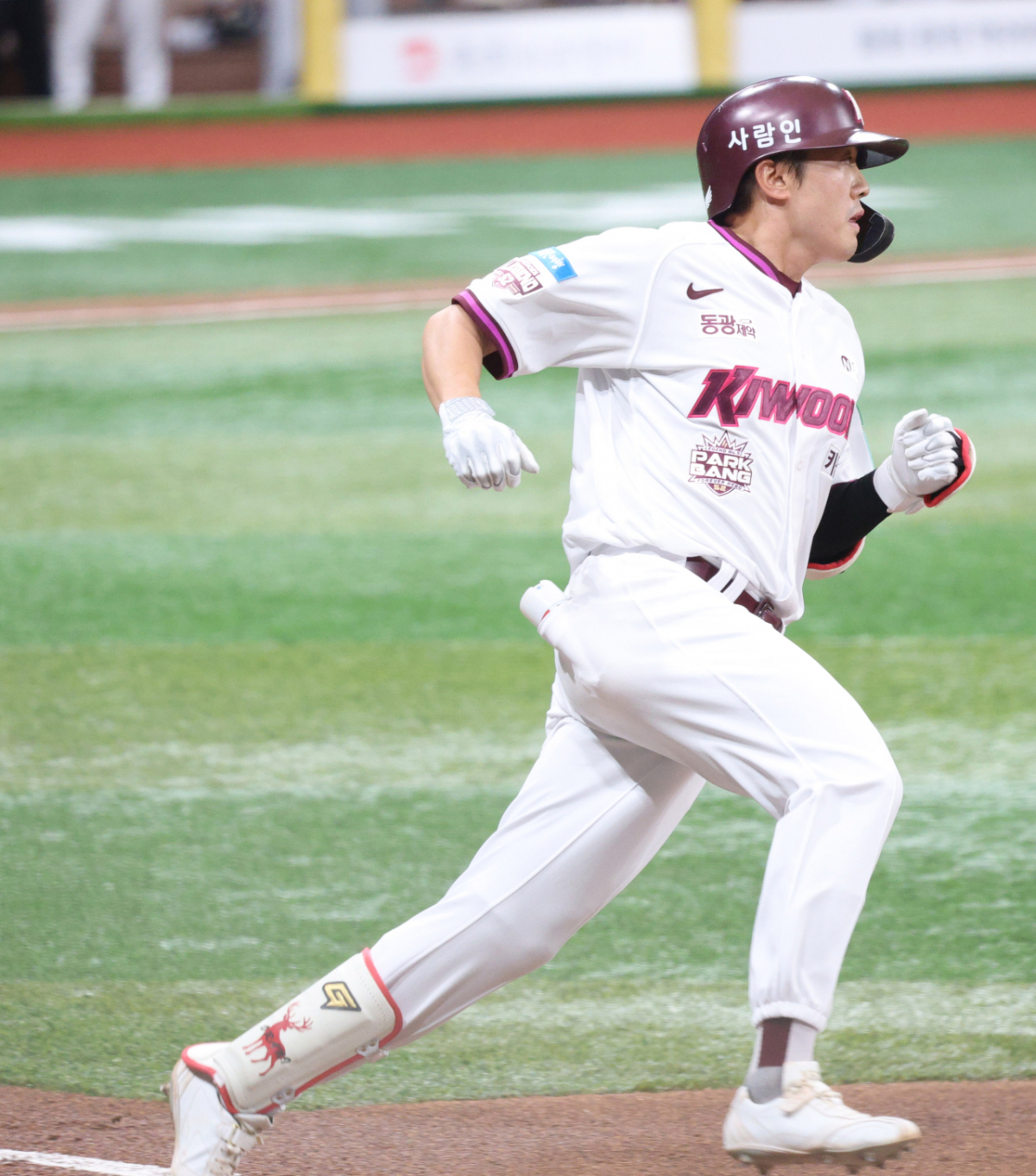 키움 오선진 3회말 1사 2루에서 선제 2타점 적시 2루타를 날리고 질주하고 있다.
