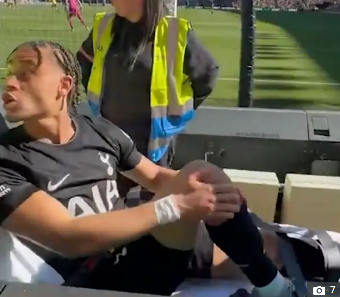 토트넘 공격수 사비 시몬스(23)가 무릎 부상으로 실려 나가는 과정에서 상대 팬들과 욕설을 주고받으며 강하게 충돌했다.