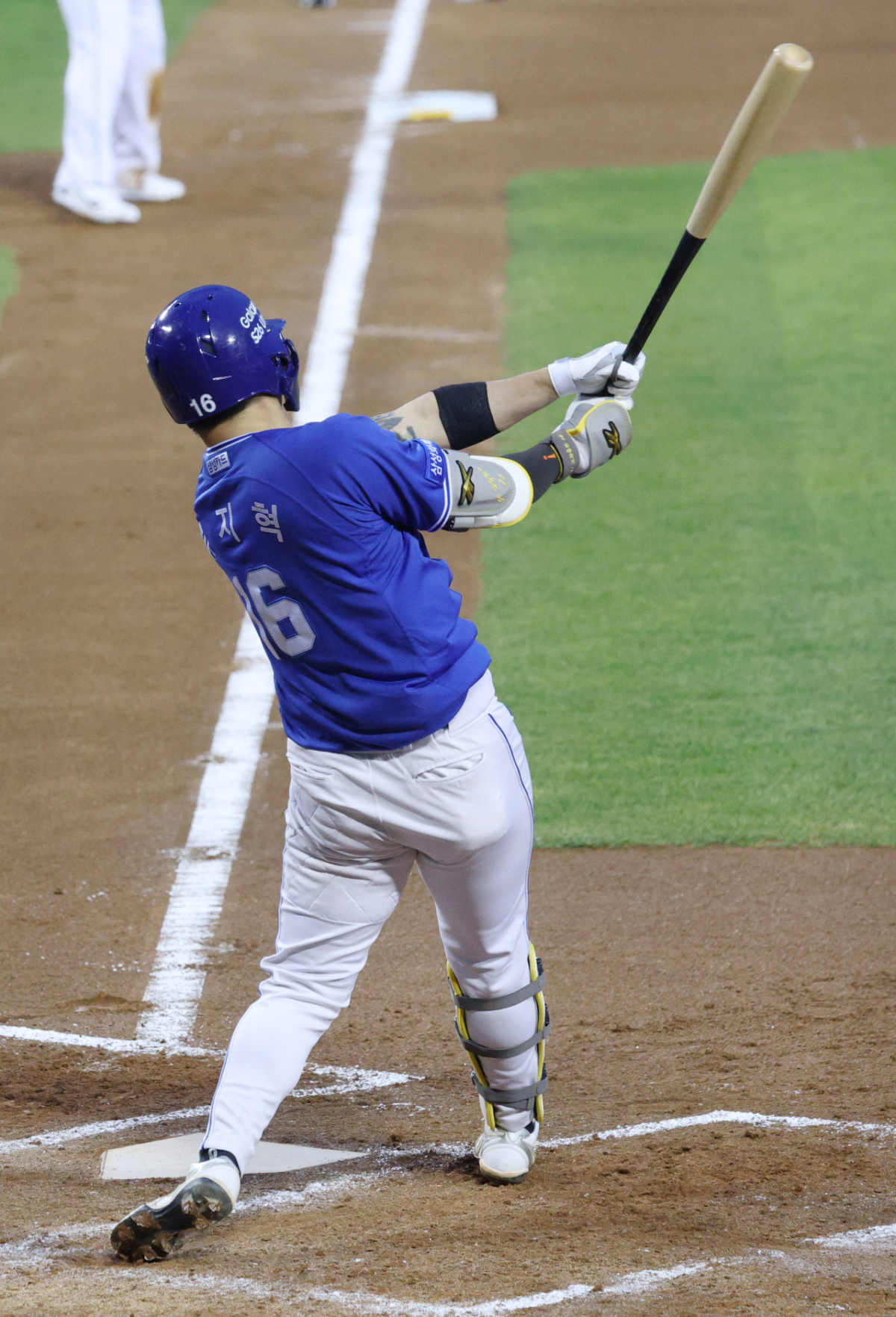 삼성 류지혁이 4회초 무사 1사 3루에서 1타점 중전 안타를 날리고 있다.