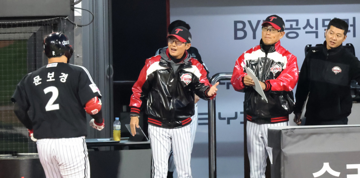 LG 4번타자 문보경이 28일 수원KT위즈파크에서 열린 2026KBO리그 LG트윈스와 KT위즈 경기 4회초 솔로홈런을 터트렸다. 그는 홈인했다. 염경엽 감독이 기뻐했다.