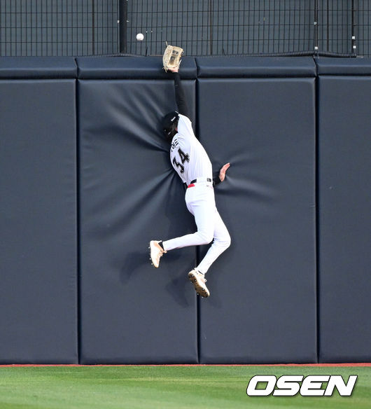 LG는 1회 선취점을 뽑았다. 톱타자 홍창기가 1볼-2스트라이크에서 한가운데로 몰린 스위퍼(131km)를 툭 밀어쳤는데 가운데 담장 상단을 맞고 나오는 장타가 됐다. 중견수 힐리어드가 펜스에 기대 점프 캐치를 시도했으나 글러브에 살짝 스쳤다. 홍창기는 3루까지 달려 세이프됐다.