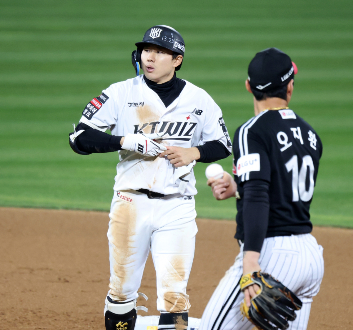28일 수원KT위즈파크에서 열린 2026 KBO리그 LG트윈스와 KT위즈 경기에서 KT 2번타자 최원준이 6회말 1사 1루 상황에 타석에 들어섰다. 최원준은 2루타를 쳐 출루했다. 이 2루타로 2,3루 찬스를 만들었다. KT 2번타자 최원준이 28일 수원KT위즈파크에서 열린 2026KBO리그 LG트윈스와 KT위즈 경기 6회말 1사 1루에서 2루타로 출루하고 있다. 2026.04.28. 독자들의 PICK! 김신영, 8년 열애 끝 결별 고백…"전남친 어머니와는 계속 연락" 박지윤 루머 유포자=전남편 최동석?...누리꾼 고소했더니 "맨날 씨뿌리고 다녀" 박정수, 75세에 늦둥이 본 김용건 '일침' '병든 남편' 학대하는 아내..."엄마는 아빠 버려도 돼" 아들의 눈물