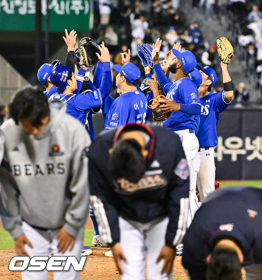 삼성 라이온즈는 28일 서울 잠실구장에서 열린 두산 베어스와의 시즌 4번째 맞대결에서 연장 접전 끝에 5-4로 승리했다. 이로써 삼성은 천신만고 끝에 연패를 끊어냈다. 경기 종료 후 삼성 선수들은 승리의 기쁨을 나눴다.