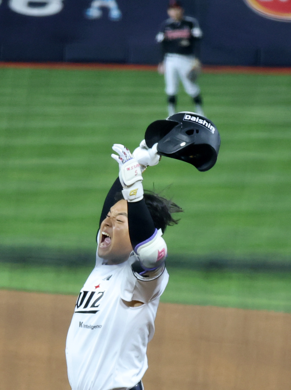 KT 강민성이 28일 수원KT위즈파크에서 열린 2026KBO리그 LG트윈스와 KT위즈 경기 10회말 첫 타석에서 끝내기 안타를 터트렸다. 강민성은 끝내기 안타를 터트린 후 환호했다. 이로써 경기는 강민성의 활약으로 마무리됐다. KT 강민성이 28일 수원KT위즈파크에서 열린 2026KBO리그 LG트윈스와 KT위즈 경기 10회말 첫타석에서 끝내기 안타를 터트린 후 환호하고 있다. 2026.04.28. 독자들의 PICK! 김신영, 8년 열애 끝 결별 고백…"전남친 어머니와는 계속 연락" 박지윤 루머 유포자=전남편 최동석?...누리꾼 고소했더니 "맨날 씨뿌리고 다녀" 박정수, 75세에 늦둥이 본 김용건 '일침' '병든 남편' 학대하는 아내..."엄마는 아빠 버려도 돼" 아들의 눈물