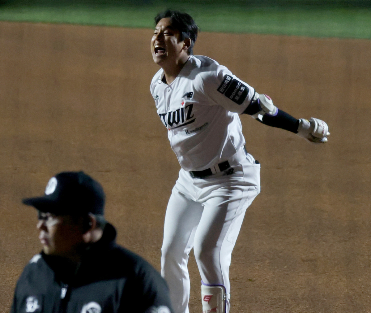 KT 강민성이 28일 수원KT위즈파크에서 열린 2026KBO리그 LG트윈스와 KT위즈 경기 10회말 첫 타석에서 끝내기 안타를 터트렸다. 강민성은 끝내기 안타를 터트린 후 환호했다. 이는 강민성에게 특별한 기분이었을 것으로 보인다.