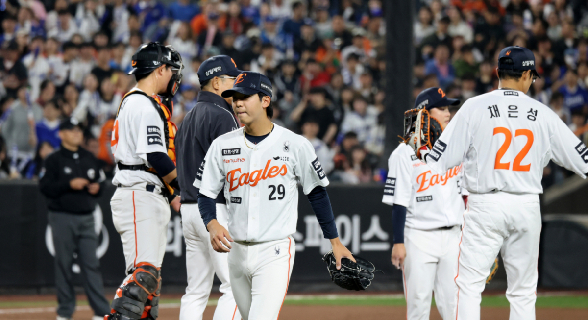 한화 벤치는 쉽게 움직이기 쉽지 않았다. 박준영을 대기 시켰으나 섣불리 투수를 교체하진 못했다. 안상현에게 다시 한 번 볼넷을 내준 뒤 최정의 잘 맞은 타구를 3루수 노시환이 완벽히 낚아채며 행운이 따르는 듯 했으나 에레디아와 풀카운트 승부에서 다시 볼넷을 내주고 결국 밀어내기로 추가 실점을 했다.