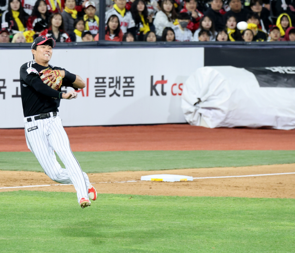 LG 3루수 천성호가 29일 수원KT위즈파크에서 열린 2026KBO리그 LG트윈스와 KT위즈 경기 5회말 2사후 이강민의 안타성 타구를 잡았다. 그는 전력으로 송구해 타자주자를 잡아냈다. 이 장면은 2026년 4월 29일에 발생했다. LG 3루수 천성호가 29일 수원KT위즈파크에서 열린 2026KBO리그 LG트윈스와 KT위즈 경기 5회말 2사후 이강민의 안타성 타구를 잡아 전력으로 송구해 타자주자를 잡아내고 있다. 2026.04.29. 젖먹던 힘까지..... 그렇지! 독자들의 PICK! "아내에 남편·딸 있었다" 결혼 후 충격...더 놀라운 진실 김신영, 8년 열애 끝 결별 고백…"전남친 어머니와는 계속 연락" '14살 차이' 배성재·김다영, 결혼 1년 만에 위기? "밤마다..." "맨날 씨뿌리고 다녀" 박정수, 75세에 늦둥이 본 김용건 '일침'