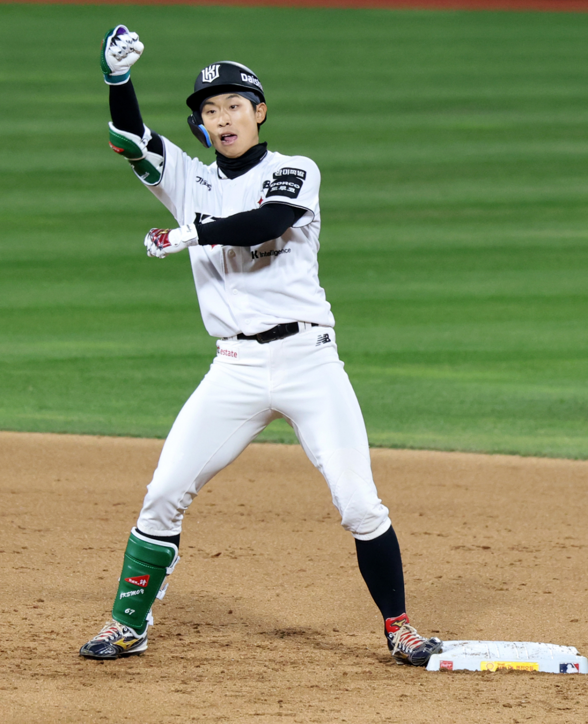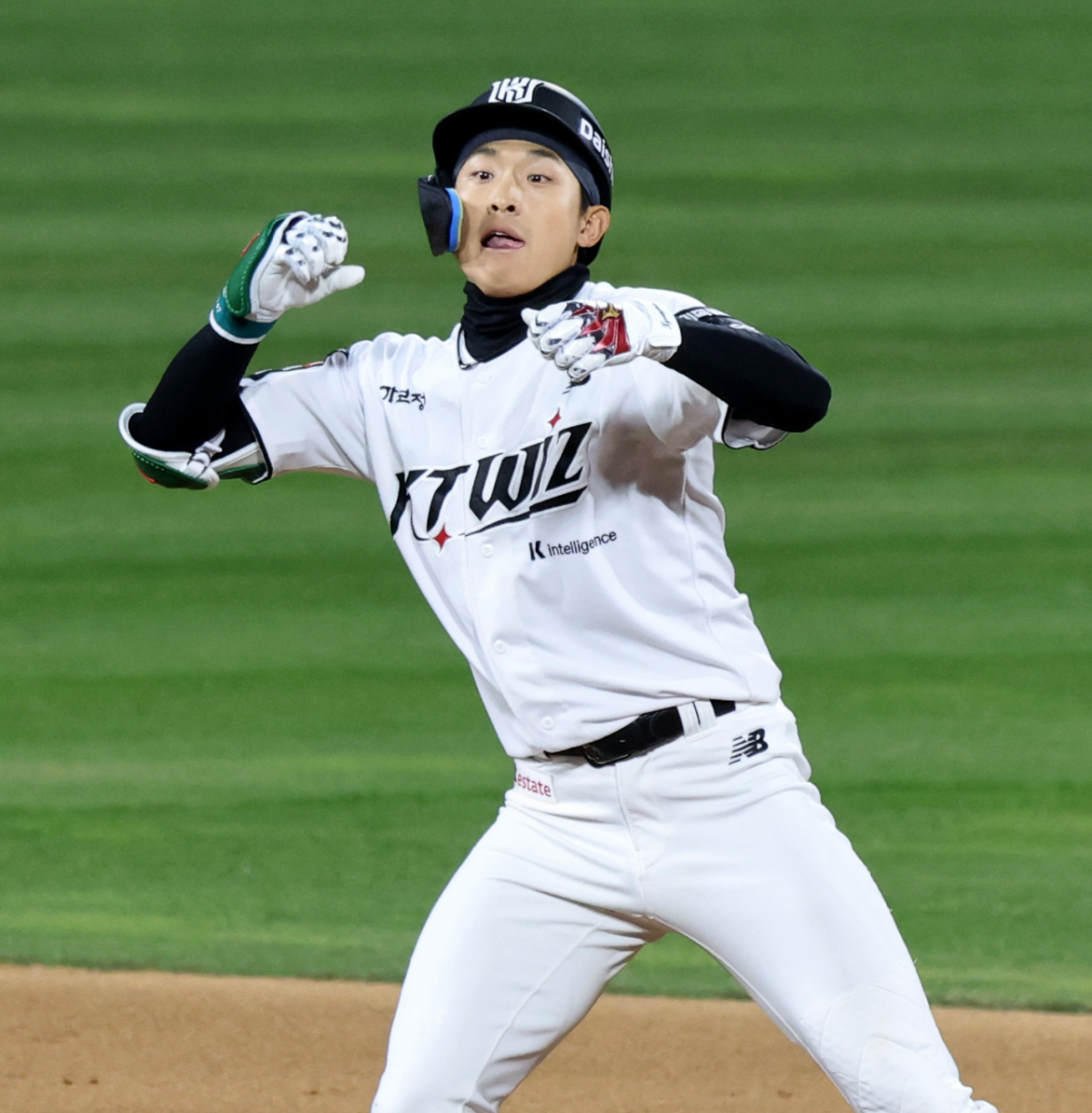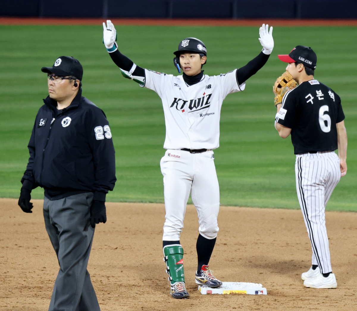 이강민 대타 유준규가 29일 수원KT위즈파크에서 열린 2026KBO리그 LG트윈스와 KT위즈 경기 7회말 2사 만루에서 2타점 동점 2루타를 터트린 후 자축하고 있다.. 2026.04.29. 독자들의 PICK! "아내에 남편·딸 있었다" 결혼 후 충격...더 놀라운 진실 김신영, 8년 열애 끝 결별 고백…"전남친 어머니와는 계속 연락" '14살 차이' 배성재·김다영, 결혼 1년 만에 위기? "밤마다..." "맨날 씨뿌리고 다녀" 박정수, 75세에 늦둥이 본 김용건 '일침'