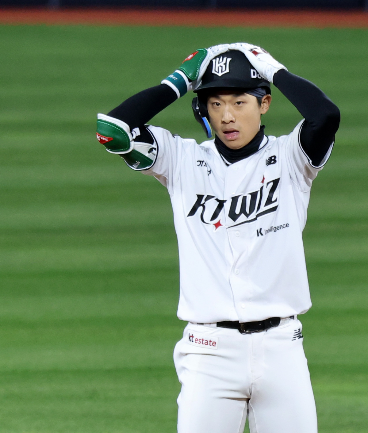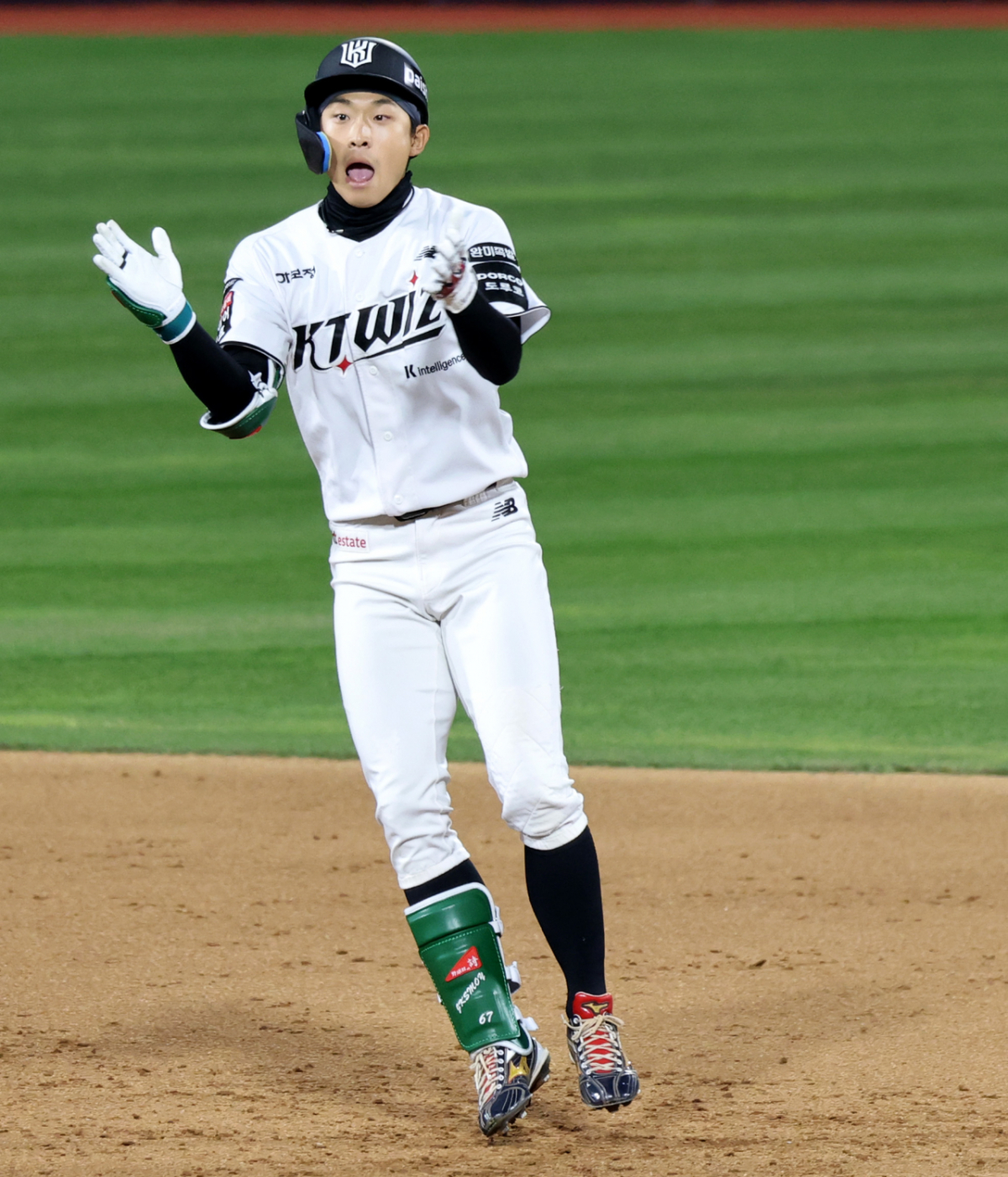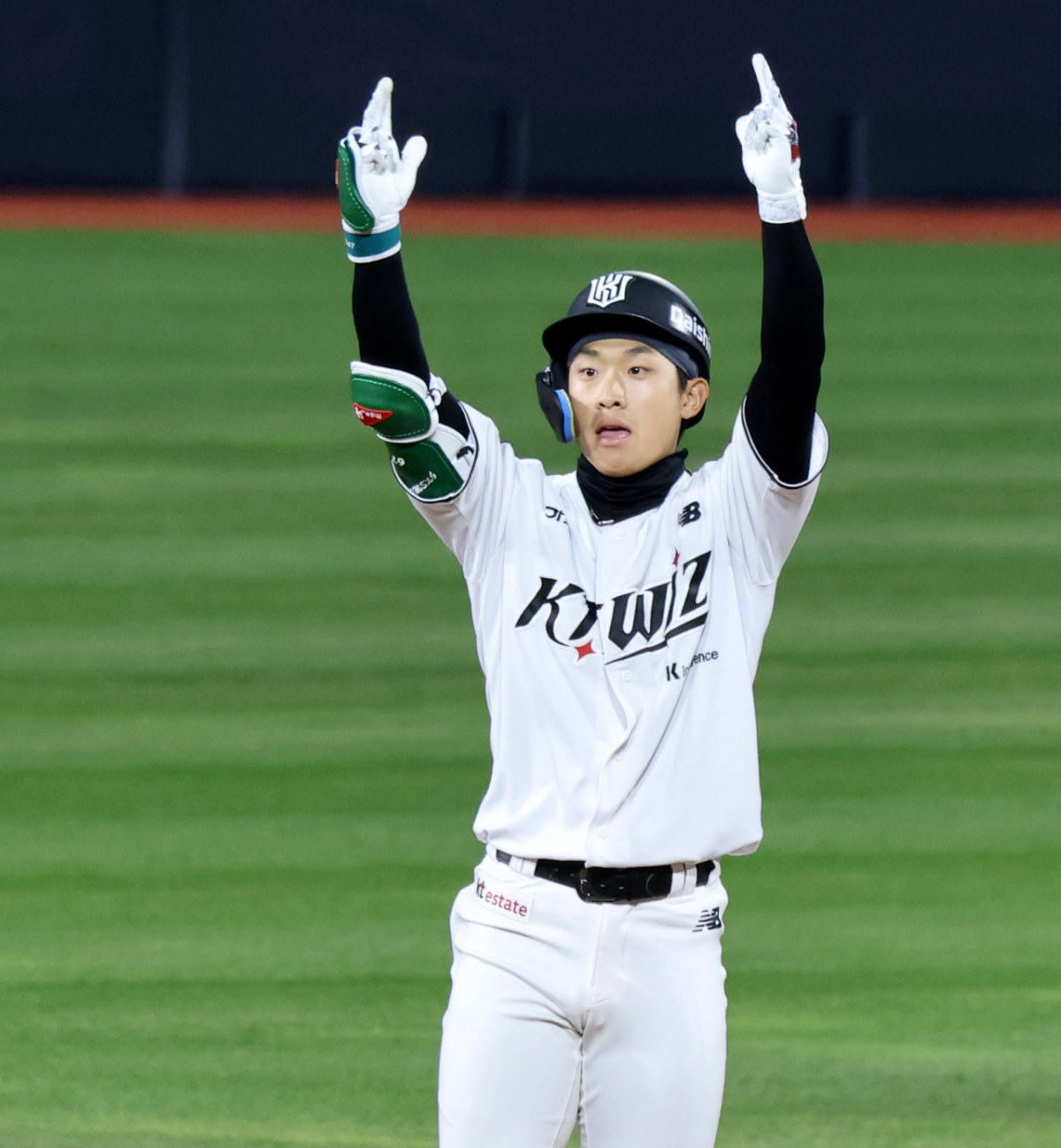 이강민 대타 유준규가 29일 수원KT위즈파크에서 열린 2026KBO리그 LG트윈스와 KT위즈 경기 7회말 2사 만루에서 2타점 동점 2루타를 터트린 후 자축하고 있다.. 2026.04.29. 독자들의 PICK! "아내에 남편·딸 있었다" 결혼 후 충격...더 놀라운 진실 김신영, 8년 열애 끝 결별 고백…"전남친 어머니와는 계속 연락" '14살 차이' 배성재·김다영, 결혼 1년 만에 위기? "밤마다..." "맨날 씨뿌리고 다녀" 박정수, 75세에 늦둥이 본 김용건 '일침'