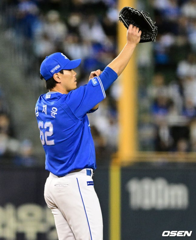 바뀐 투수는 김재윤(36). 올 시즌 4세이브(1승 1패)를 따낸 팀 마무리였다. 그러나 지난 22일 SSG 랜더스전에서 ⅓이닝 1피안타 2볼넷 2실점으로 패전 투수가 되는 등 최근 3경기 연속 안타를 내주며 불안감을 노출했다.