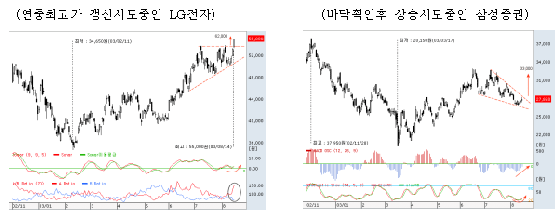 이러한 상승흐름은 주요종목을 중심으로 신고가 갱신종목이 다수 나타나고 있다는 점에서 맥을 같이 하고 있다. 사상최고가 갱신을 시도하고 있는 삼성전자를 필두로 LG전자, 삼성SDI, LG화학 등 화학주들이 신고가 갱신을 선도하고 했다. 아울러 삼성증권 등 증권주와 같이 조정후 바닥을 확인한 후 상승시도중인 업종들도 나타나고 있다.