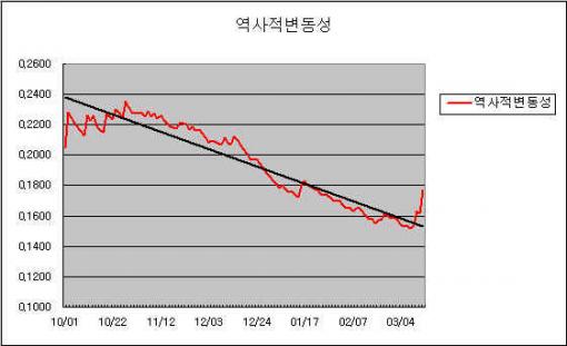<반대방향으로 돌아선 역사적 변동성>