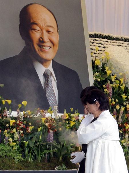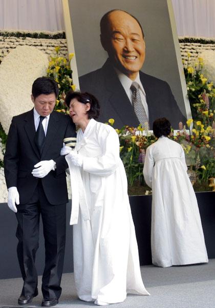 손 흔들며 안녕을 고하는 박영자 미망인 25일 서울아산병원 故 정세영 현대산업개발 명예회장의 영결식에서 박영자 미망인이 헌화를 마치며 남편의 영정에 손을 흔들며 안녕을 고하고 있다. 헌화를 마친 박영자 미망인은 참았던 슬픔을 터트리며 큰아들 정몽규 회장을 붙잡고 흐느끼고 있다. 독자들의 PICK! '고려대 얼짱' 걸그룹 멤버, 돌연 신내림..."10kg 빠지고 가족 죽는 꿈" "조갑경, 방송서 '아들 불륜' 나 몰라라…벌 받길" 전 며느리 분노 '김준호♥' 김지민, 시험관 시술 부작용…"살벌하게 부어" 시부모엔 용돈 30만원, 친정은 불가…"네 월급으로 줘" 남편과 갈등